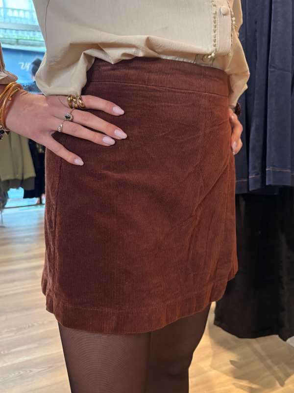 jupe short verte ou cognac