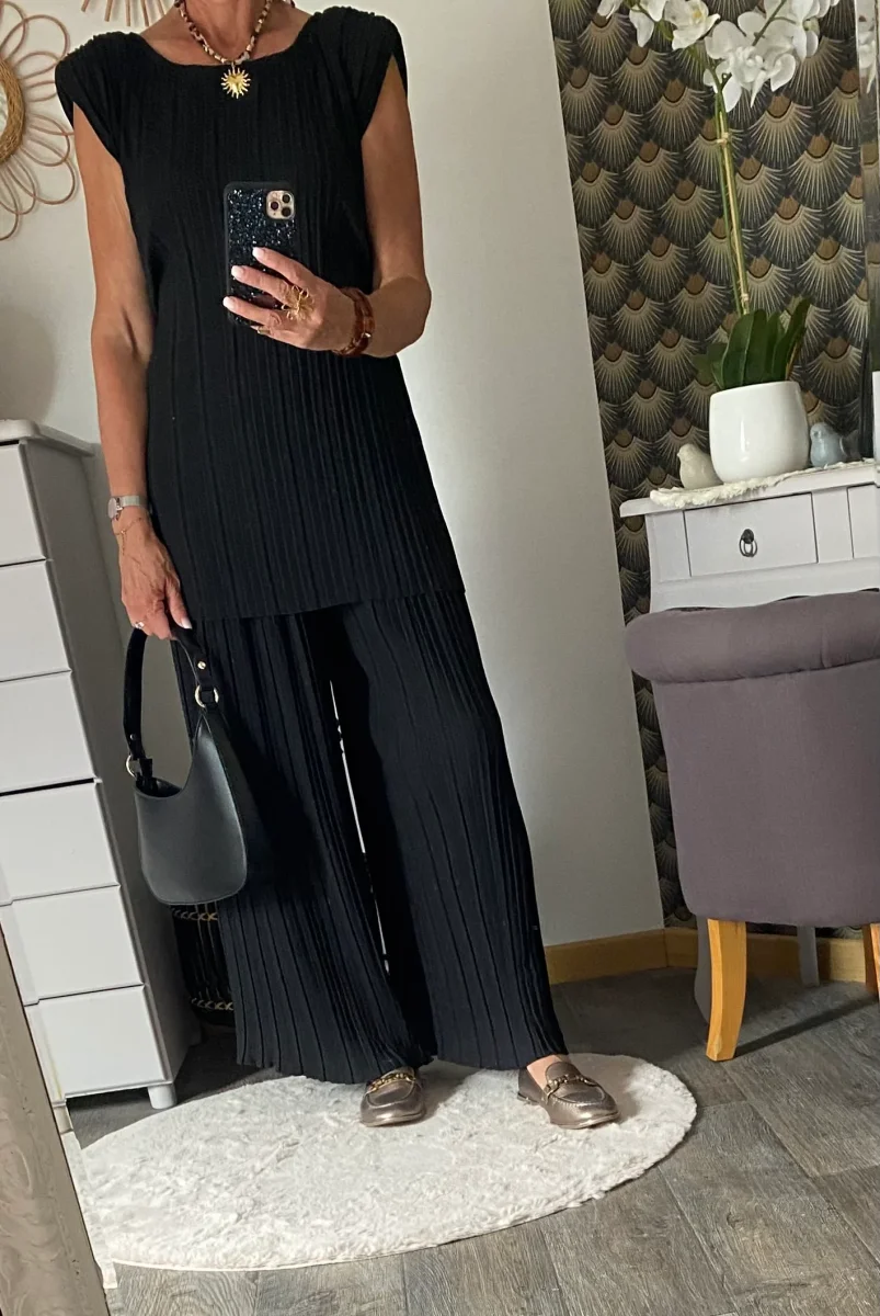 ENSEMBLE PANTALON PLISSE NOIR TU 36/48