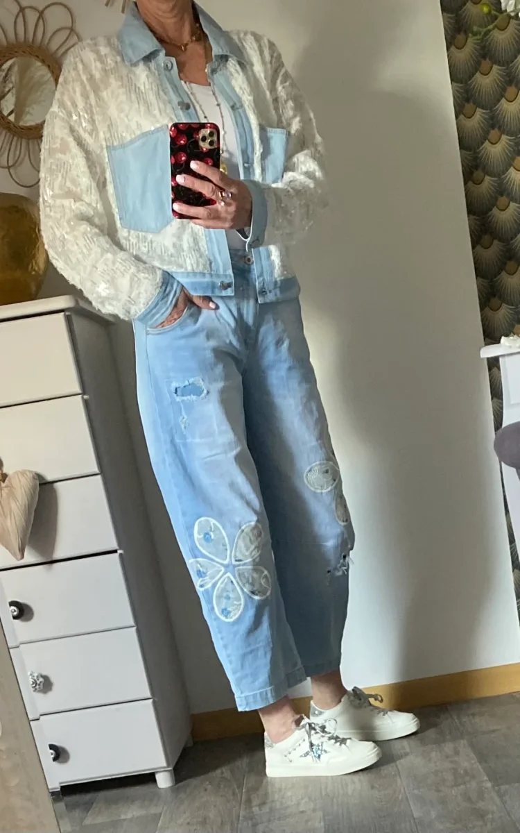 PANTALON JEAN FLEURS CARLA TAILLES :S M L XL
