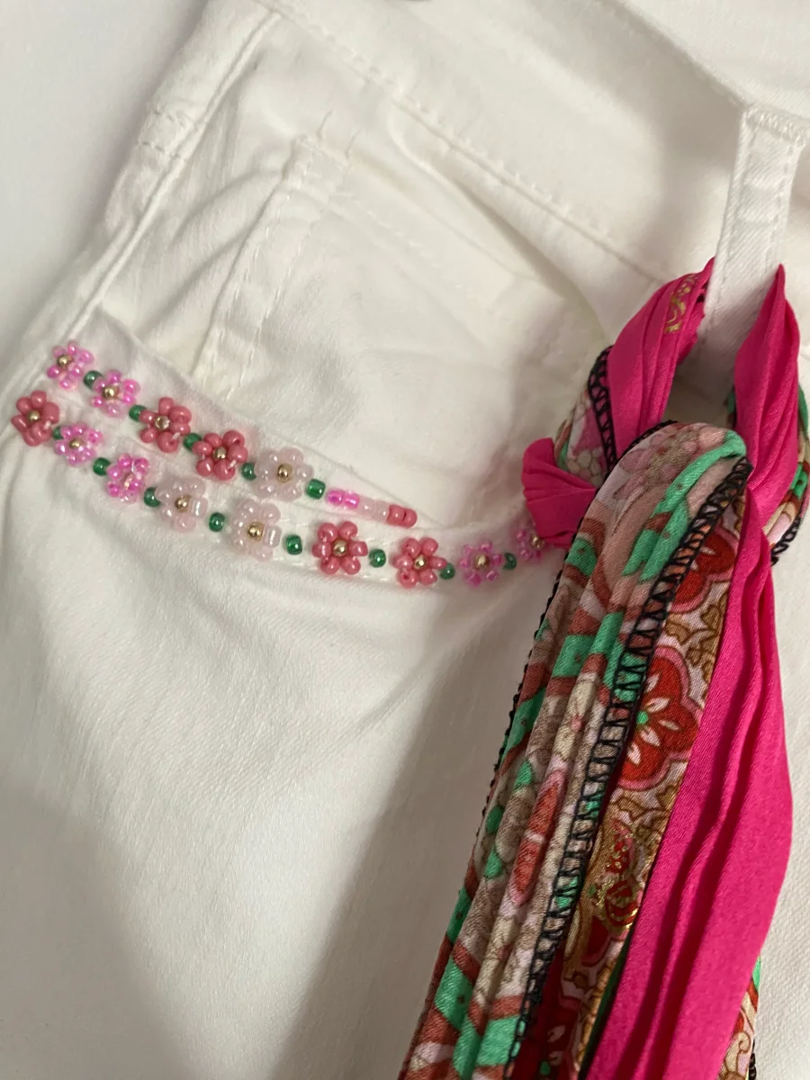 PANTALON ORNADO FLEUR PERLES BLANC TAILLES S /M/ L/ XL/ XXL