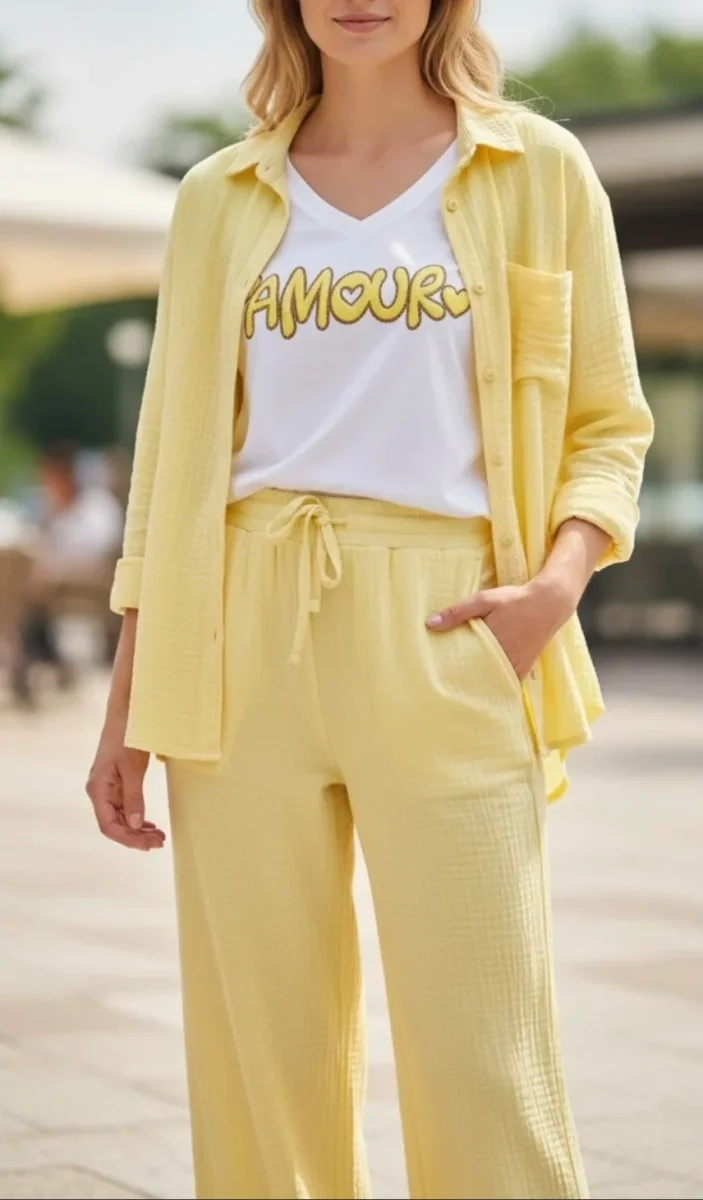 PANTALON PALAZZO JAUNE PALE TU 42/48