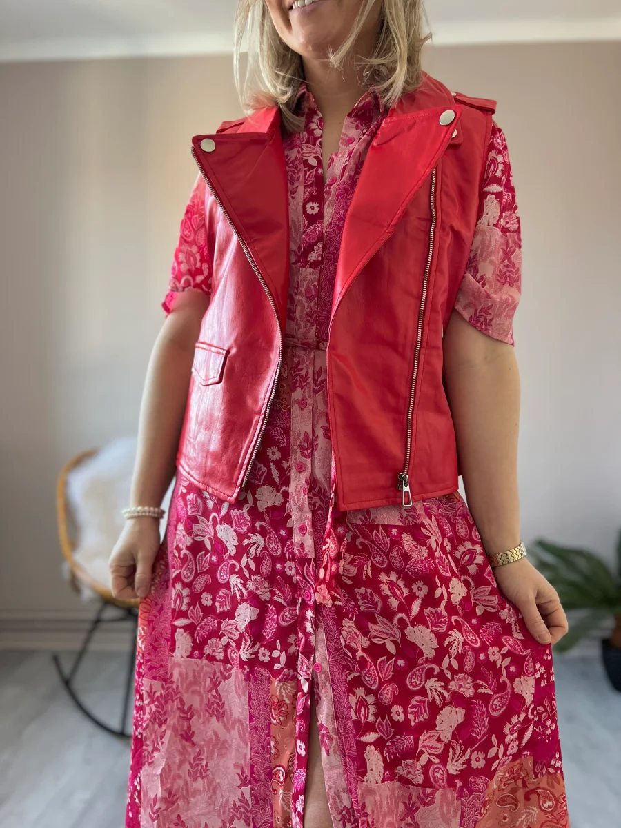 LE PERFECTO SANS MANCHE EN SIMILI ROUGE