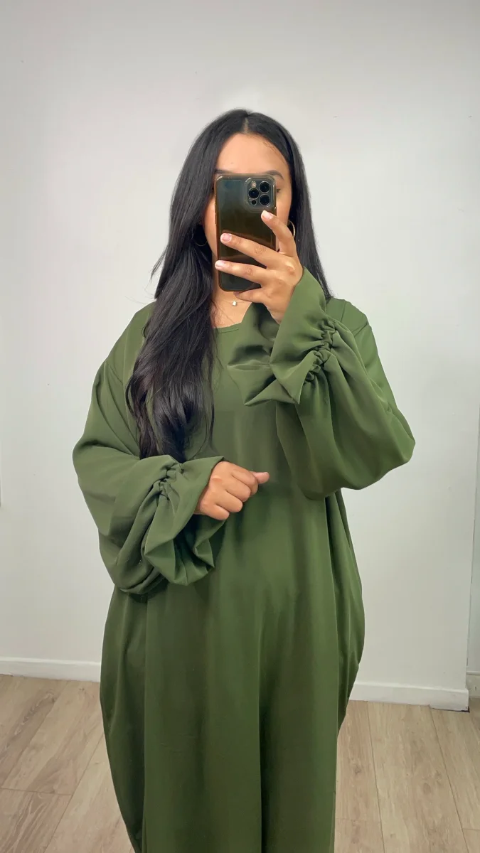 Abaya manche tulipe Kamila Kaki