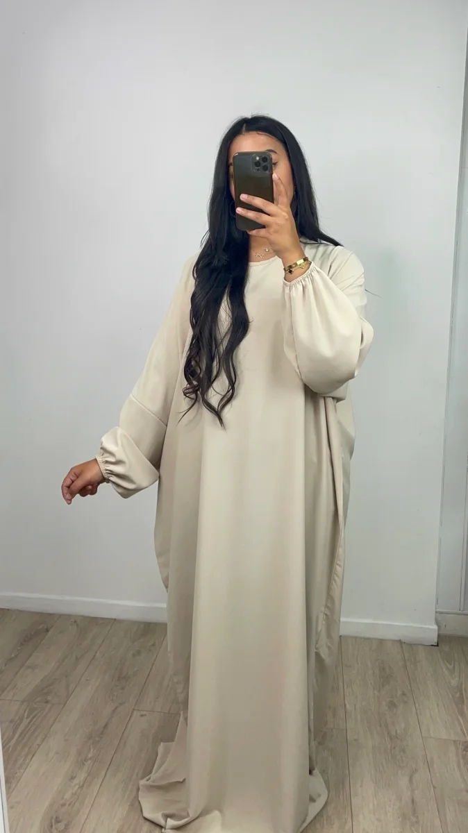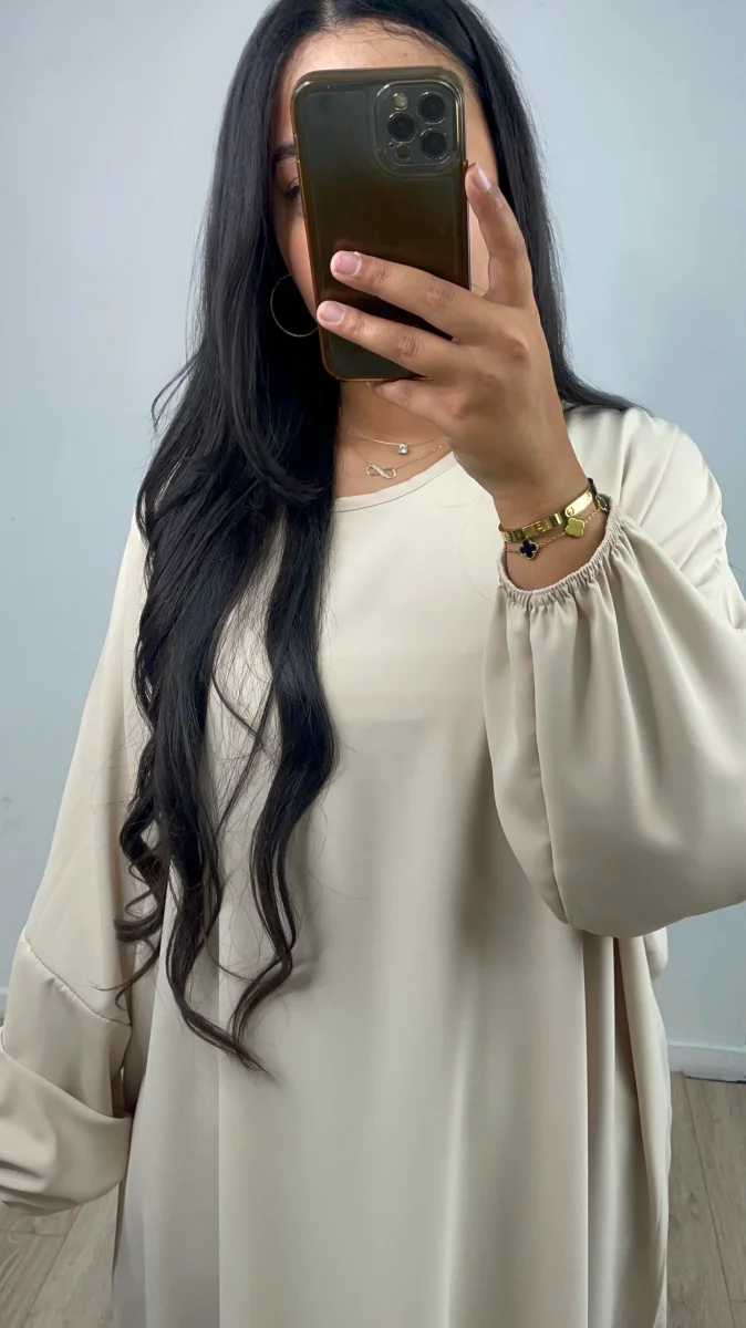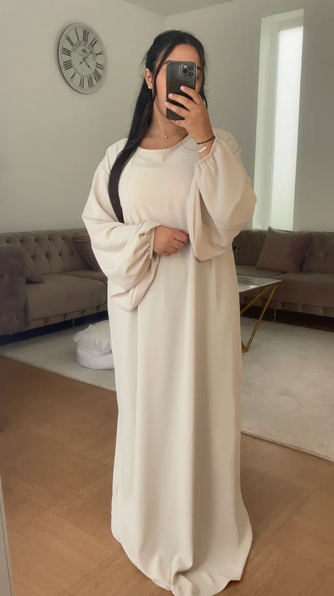 Abaya simple avec manches bouffantes. Taille unique du 32 au 44 Information : Le mannequin mesure 1m57 et porte une taille unique .