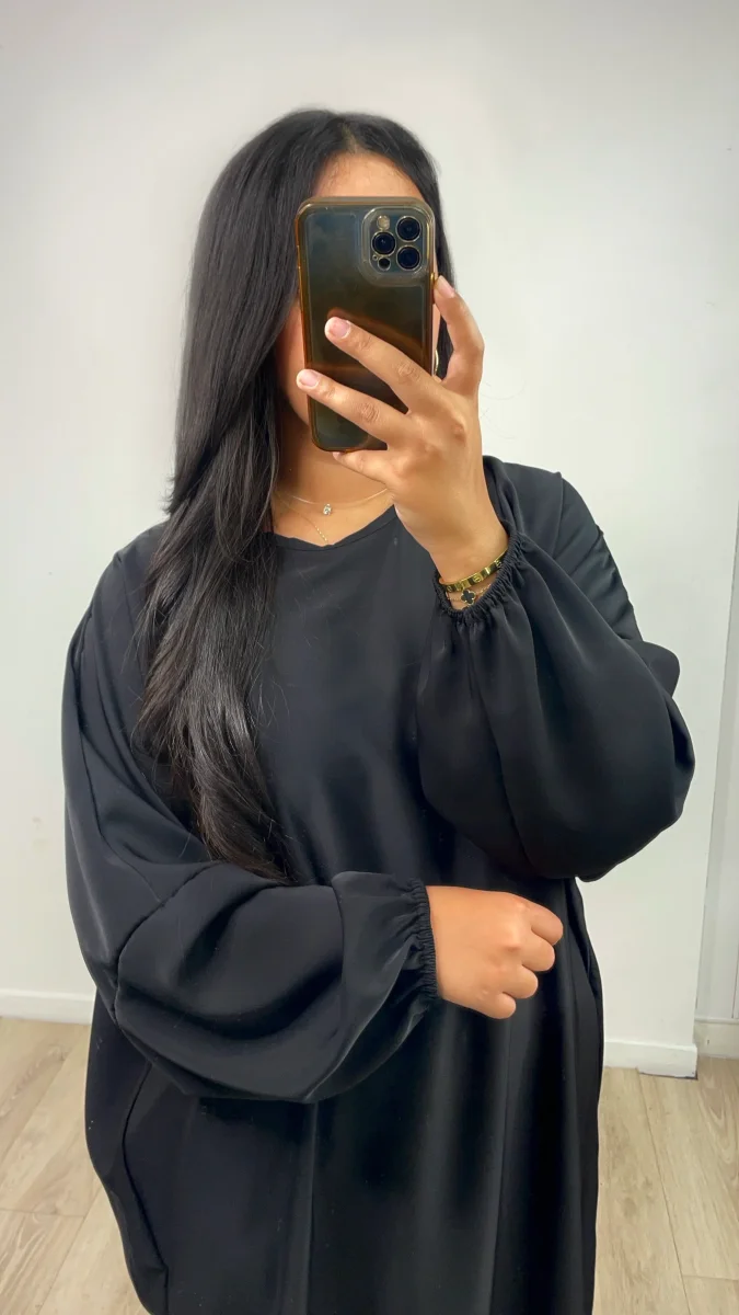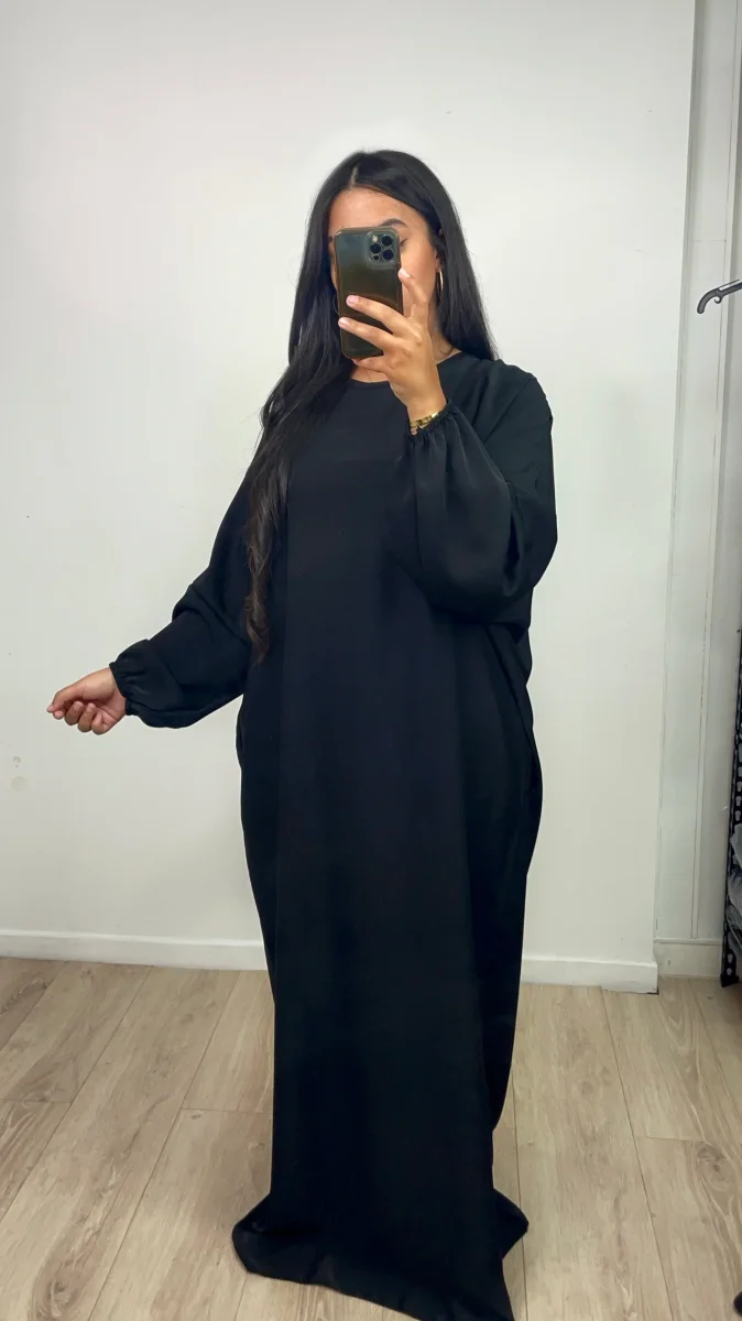 Abaya simple avec manches bouffantes. Taille unique du 32 au 44 Information : Le mannequin mesure 1m57 et porte une taille unique.