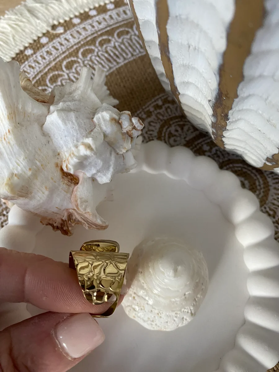 Bague large en acier inoxydable composé d’ un anneau effet écaille serti d’ un cristal taillé rectangulaire . bague ajustable d’ un 52 à un 56 hauteur 20mm dimension pierre 10X14mm GARANTIE SANS NICKEL CADMIUM SANS SEL DE PLOMB RESISTE A L ‘ EAU