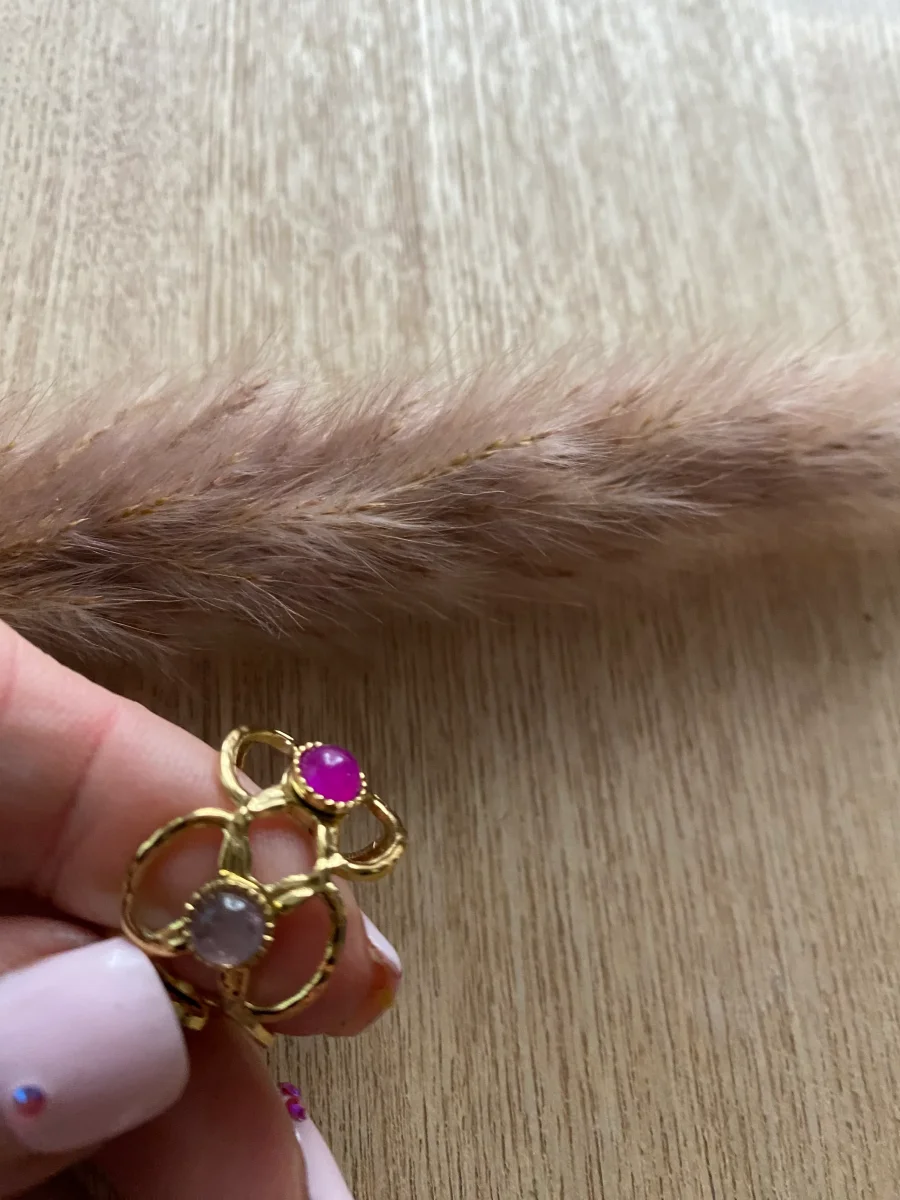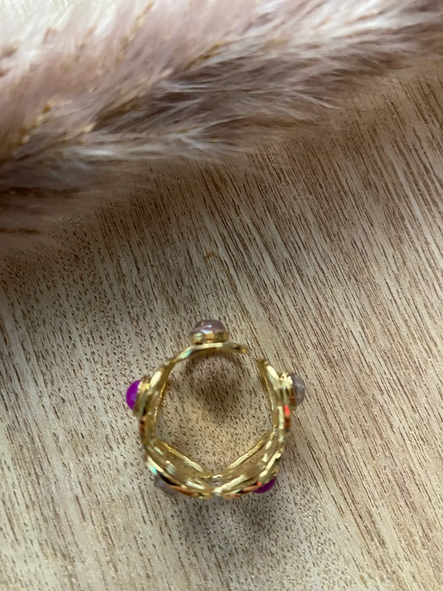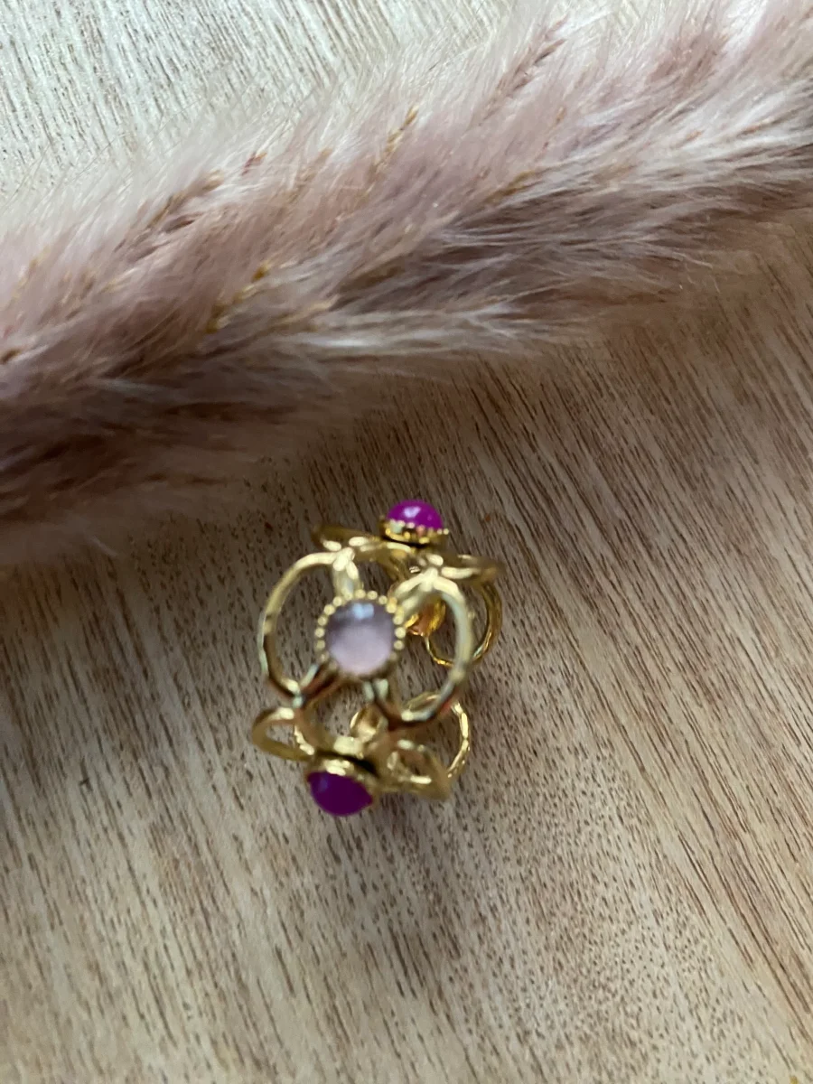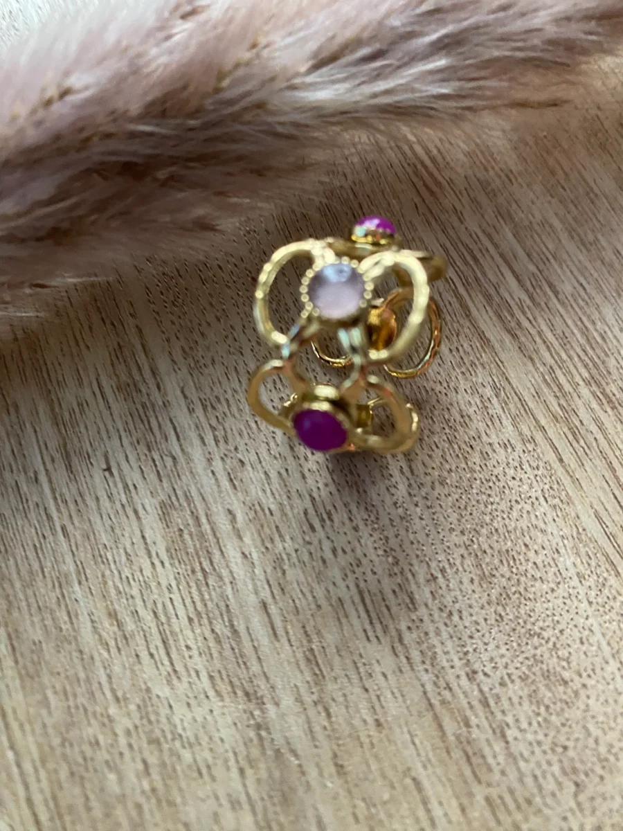 Bague en acier inoxydable composée de 5 motifs fleurs , ajourée , et de pierres naturelles