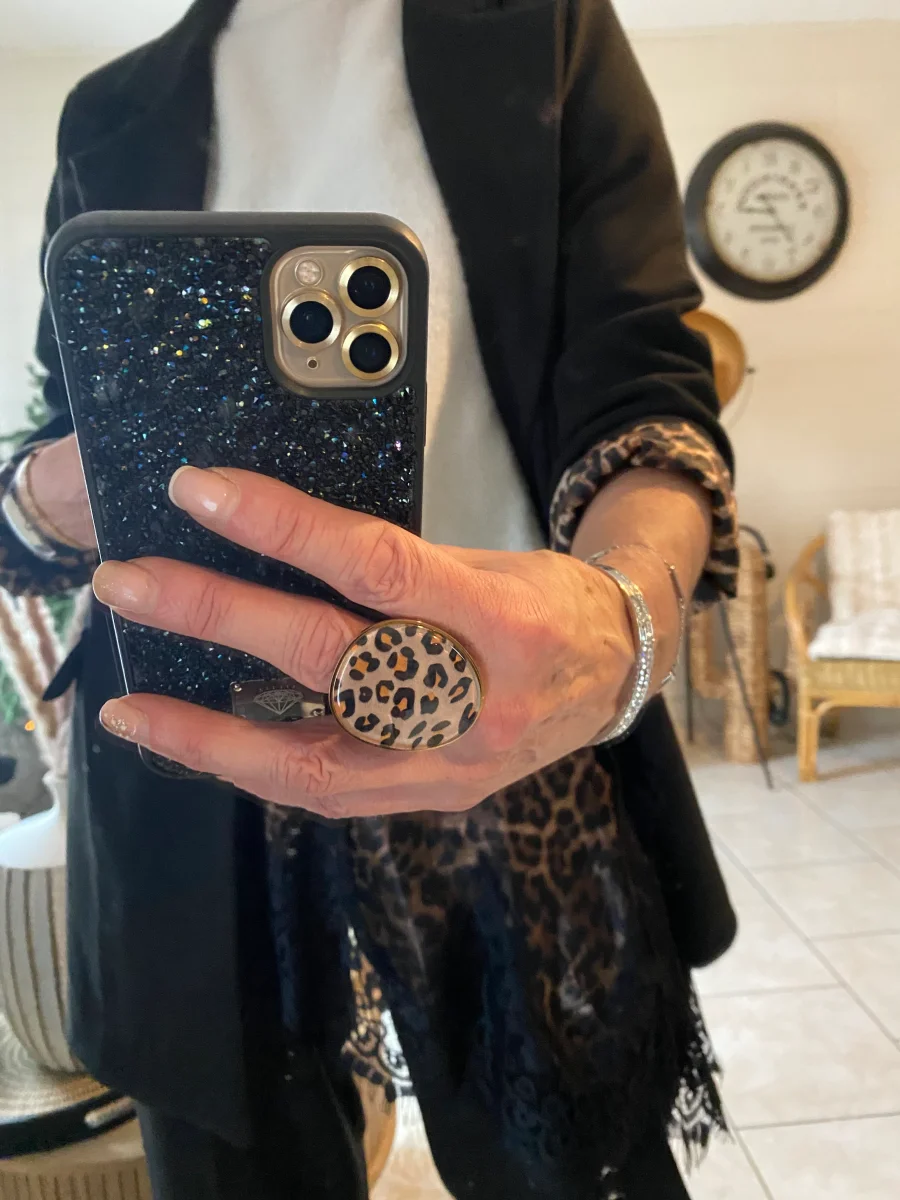 Bague avec motif léopard réglable .large .Forme ovale