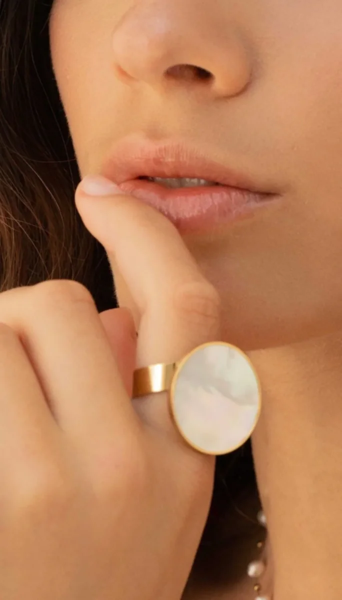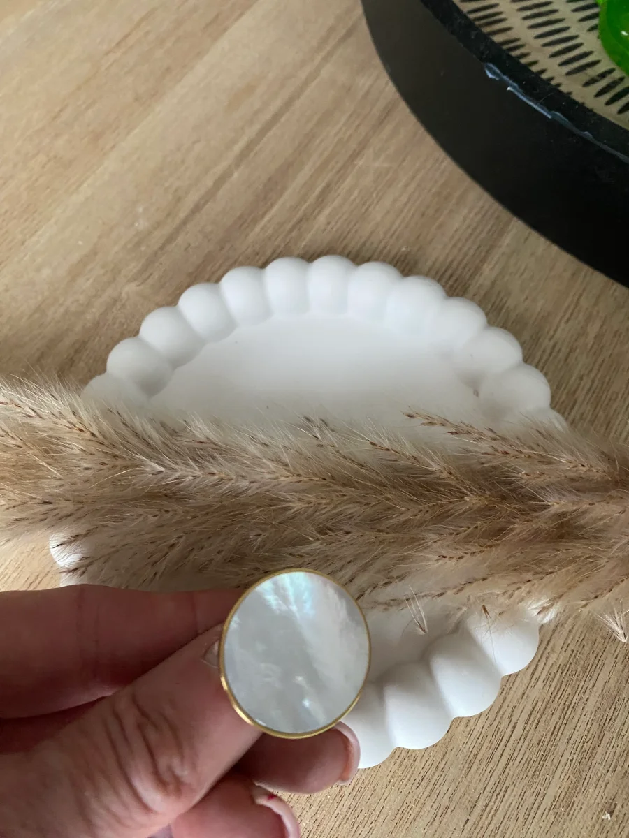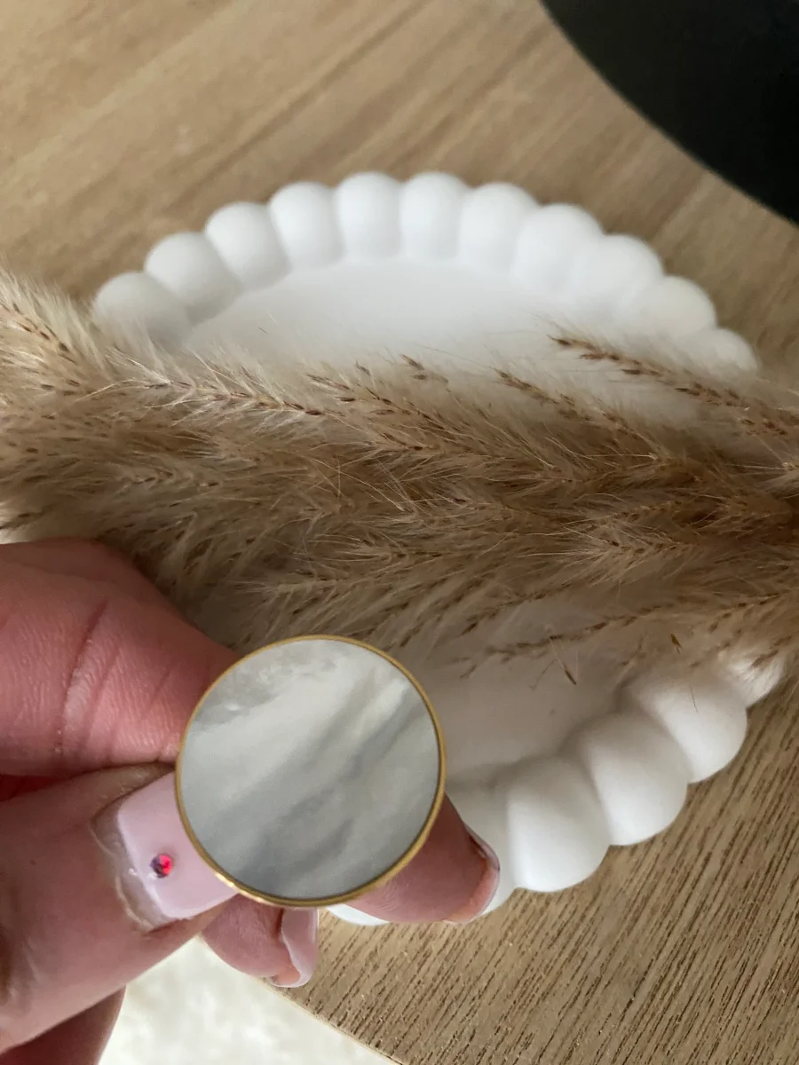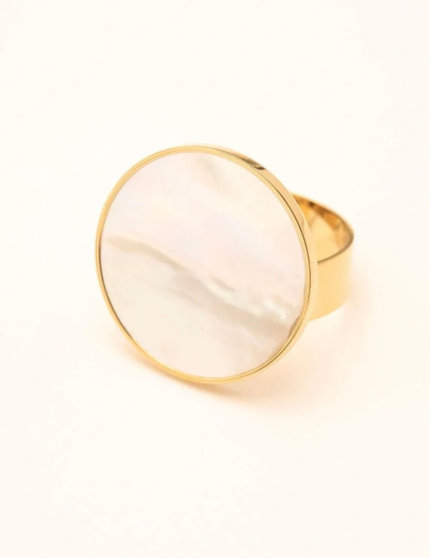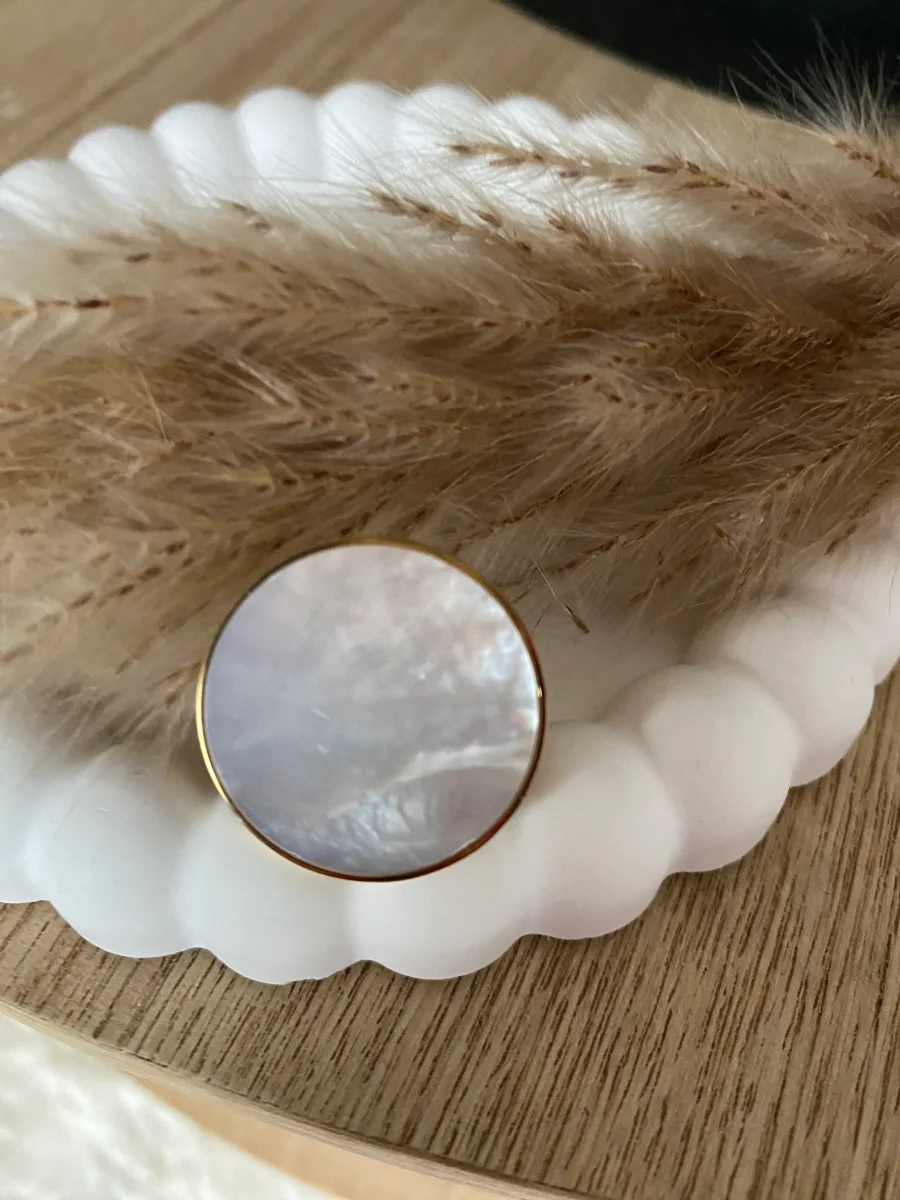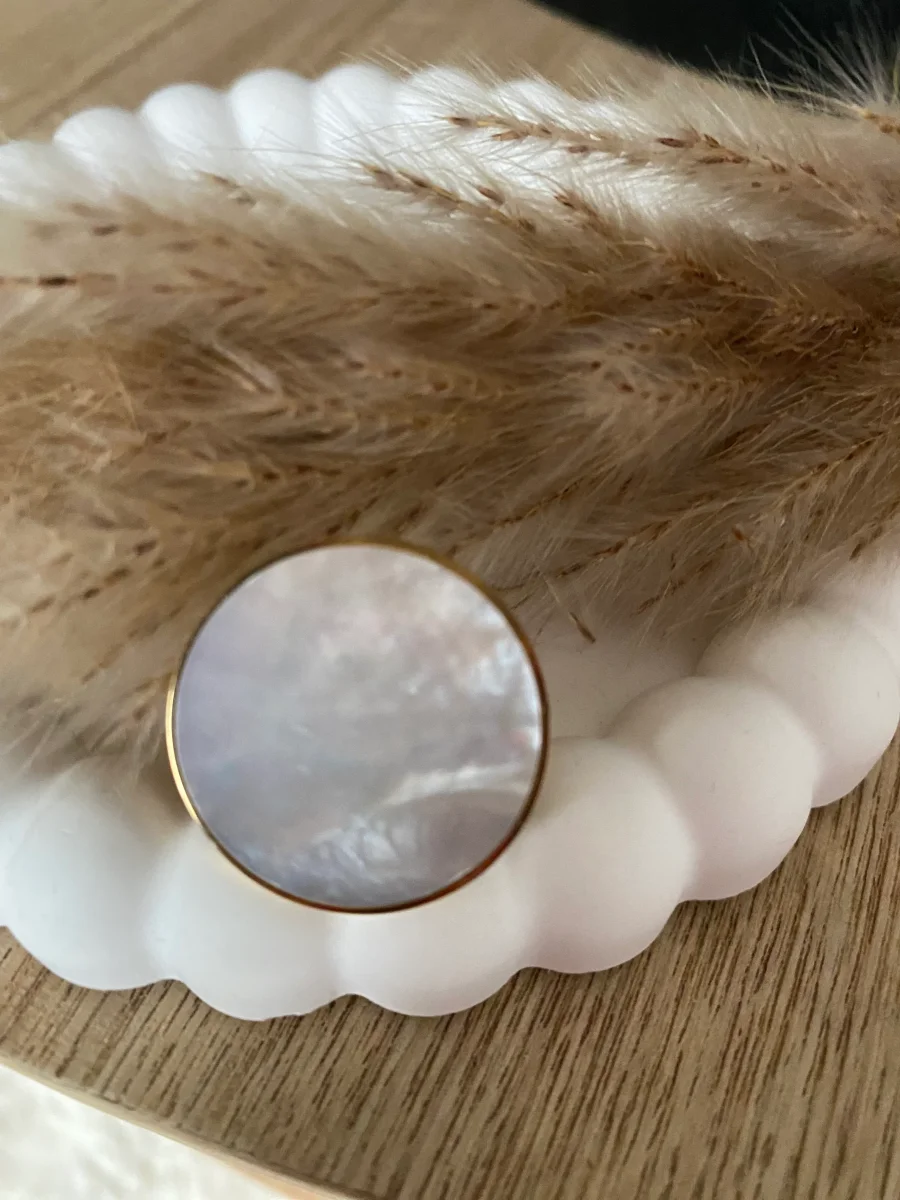 BAGUE RONDE ACIER INOXYDABLE ET NACRE
