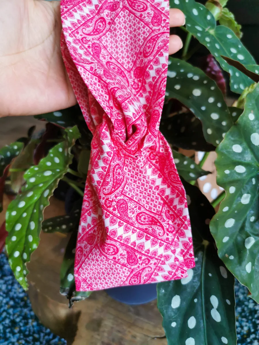 Ce bandeau sont en viscose et coton. Ce tissu est très doux et il n’est pas agréssif pour vos cheveux.