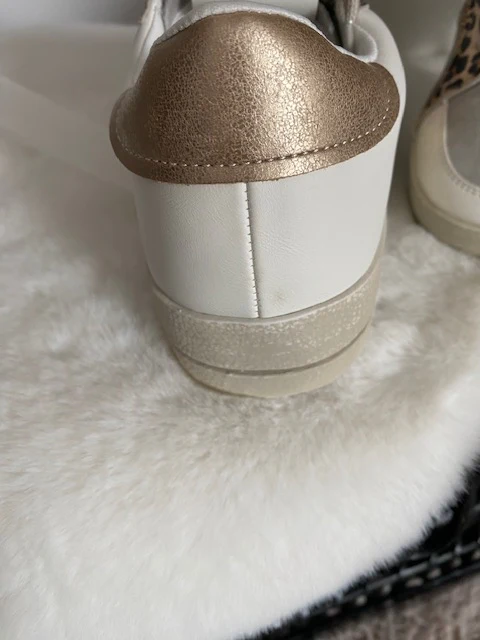 Baskets blanches à lacets , avec motif léopard et daim gris clair et sequins roses gold Prendre sa pointure normale Existe en: 36 37 38 39 40 41
