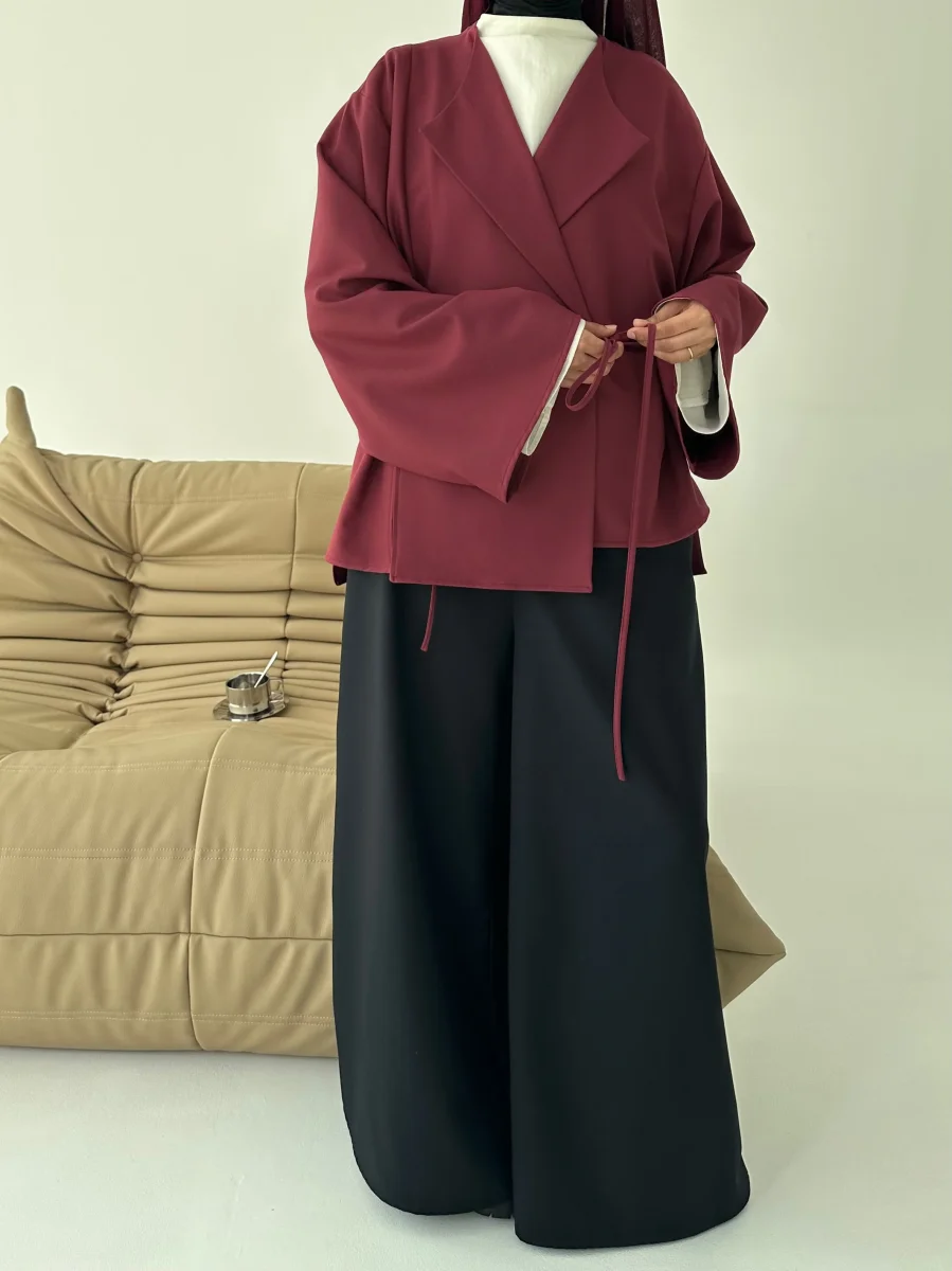 Sophistiqué et moderne, sa ceinture ajustable permet de le porter ouvert ou cintré selon l’envie. Léger et élégant, il se marie parfaitement avec un pantalon ample ou une jupe.