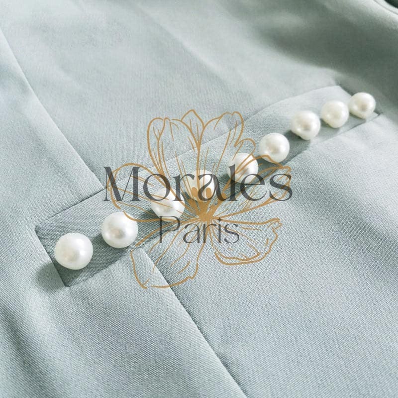 Vie de Bohème vous propose ce magnifique blazer chic avec poches ornées de perles pour femme. Vous pouvez choisir entre bleu et gris clair, et des tailles S, M ou L. Fabriquée en polyester, elle est dotée de fermetures à boutons et des perles sur les poches. Parfait à porter avec un jean pour un look très chic.