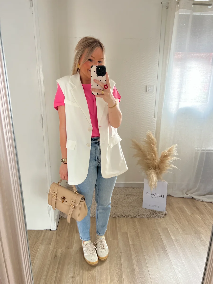 - Détails : Doté de deux poches avant discrètes et de boutons assortis, ce blazer peut être porté ouvert pour une allure décontractée ou fermé pour un style plus structuré.