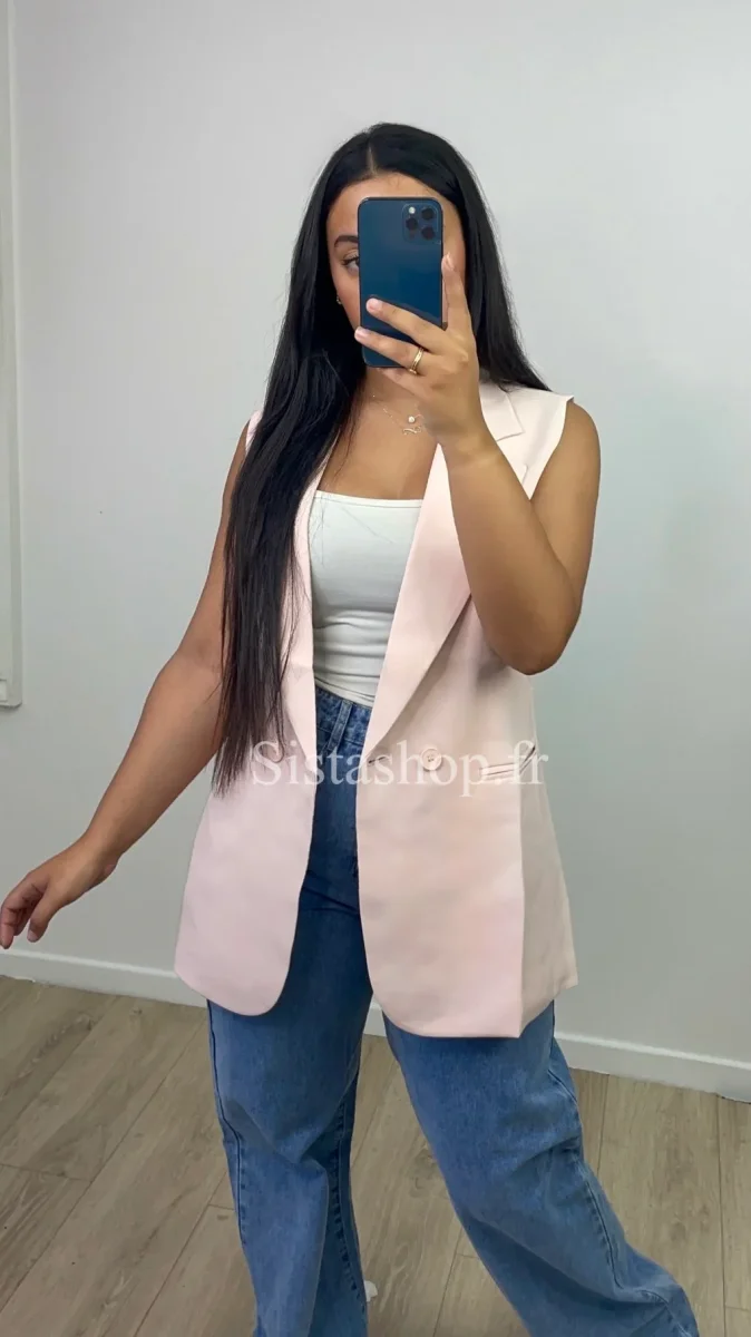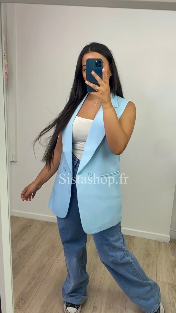 Élevez votre style avec notre blazer sans manches bleu clair, une pièce incontournable pour une allure à la fois chic et décontractée. Conçu dans une coupe longue, ce blazer s’adapte parfaitement à toutes les morphologies;