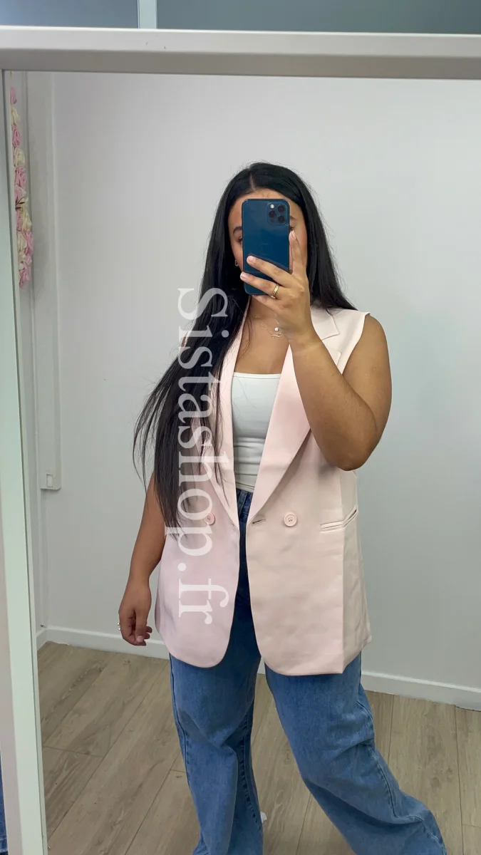 Blazer Sans Manches Rose Clair