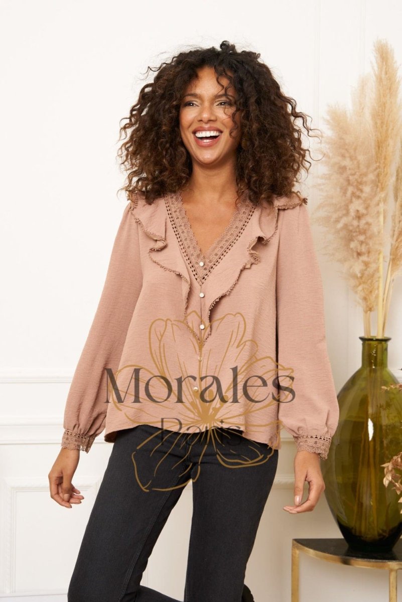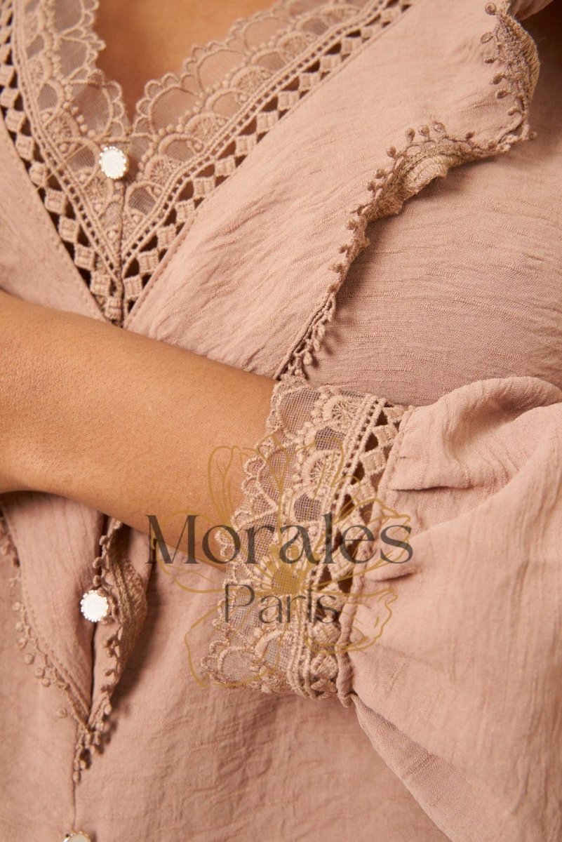 Cette blouse bohème ample et douce offre des volumes qui vous donneront un look romantique. Ses longues manches bouffantes se resserrent sur les poignets et sont ornées de délicates dentelles. Parfait pour une allure décontractée en l’associant avec un jean !