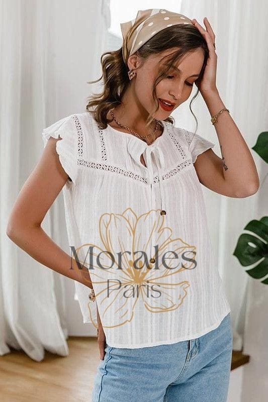 Ce haut léger et très agréable à porter est un indispensable pour les journées chaudes. Avec son style classique et sa coupe décontractée, il est parfait pour les journées estivales. La blouse bohème blanche peut être personnalisée avec son ouverture boutonnée ou ses cordons de nouage et ses petites perles. Les manches courtes volantées ajoutent une touche d’élégance supplémentaire à ce top.
