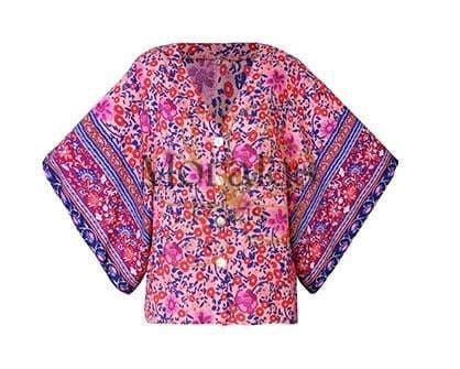 Cette blouse au style bohème est dotée de magnifiques motifs floraux. Elle deviendra rapidement l’une des pièces indispensables de votre garde-robe pour l’été. Avec ses couleurs vives, cette chemise peut égayer n’importe quelle tenue et apporter une touche féminine supplémentaire. Sa coupe ample dotée de manches fluides et légères, ainsi que ses boutons, en font la blouse idéale pour la saison chaude.