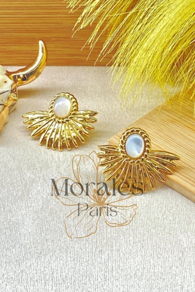 Boucles d’oreilles à l’allure bohème chic ornées d’une pierre blanche nacrée