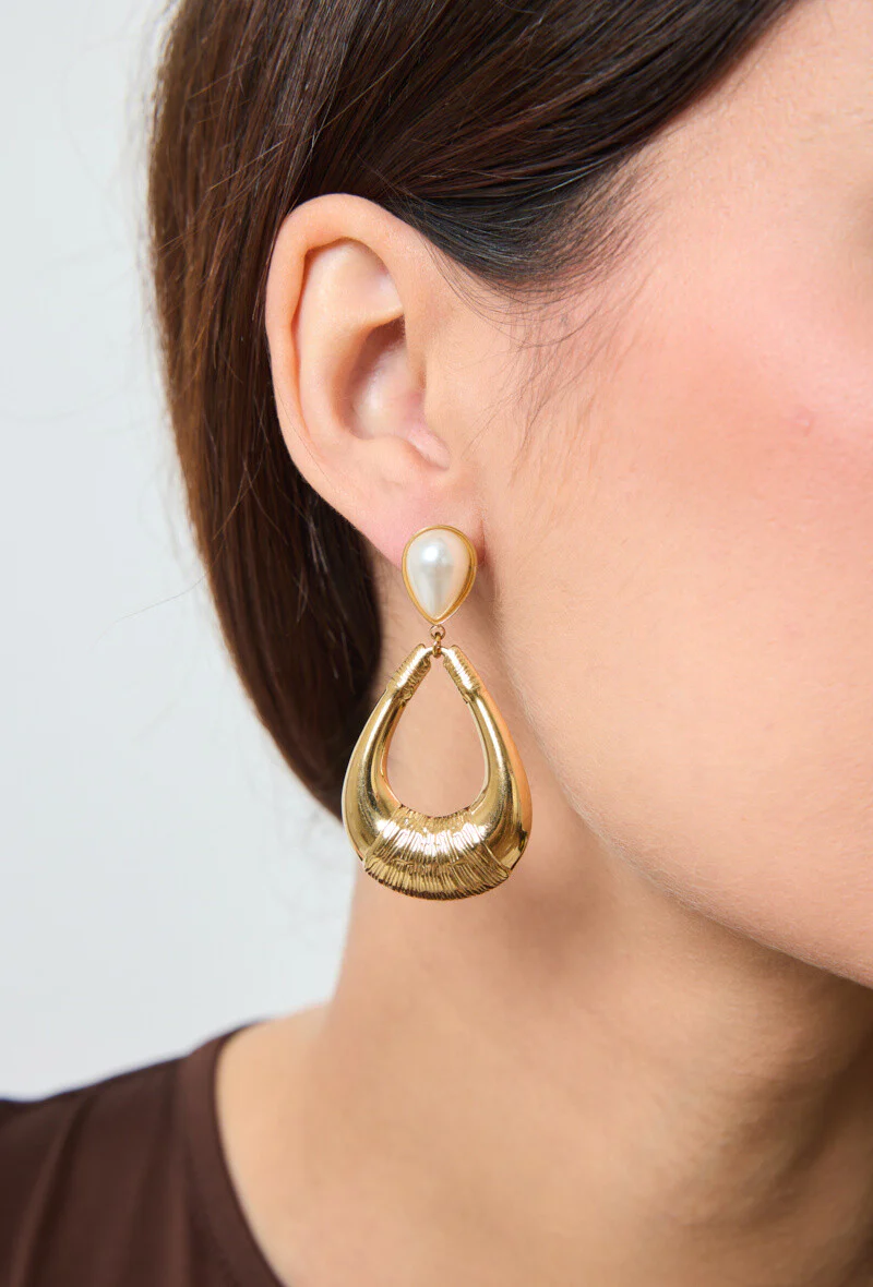 Boucles d’oreilles élégantes en acier inoxydable avec perles Correspondance: 5.5X3cm Composition: Acier inoxydable : 80%, Perle : 20% Référence: BOJ031020