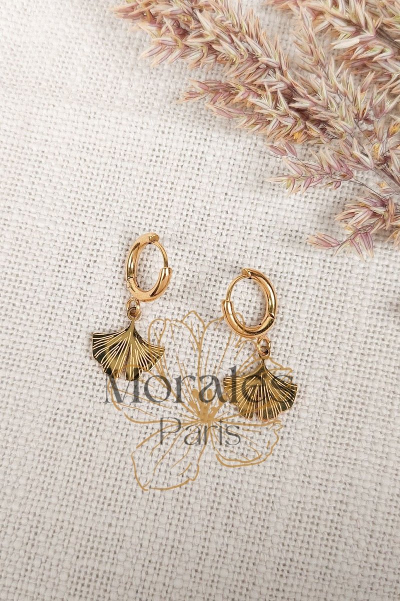 Subtiles et raffinées, ces boucles d’oreilles feuilles de gingko ajoutent une touche de sophistication à votre look. Faciles à assortir, elles peuvent être portées aussi bien en hiver qu’en été. Boucles d’oreilles de type créole avec fermoir charnière et pendentif en forme de feuilles de gingko, l’arbre sacré de l’Orient. Une très jolie idée cadeau.