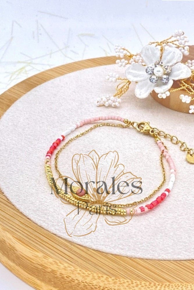 Bracelet Bohème Fin Perles Roses