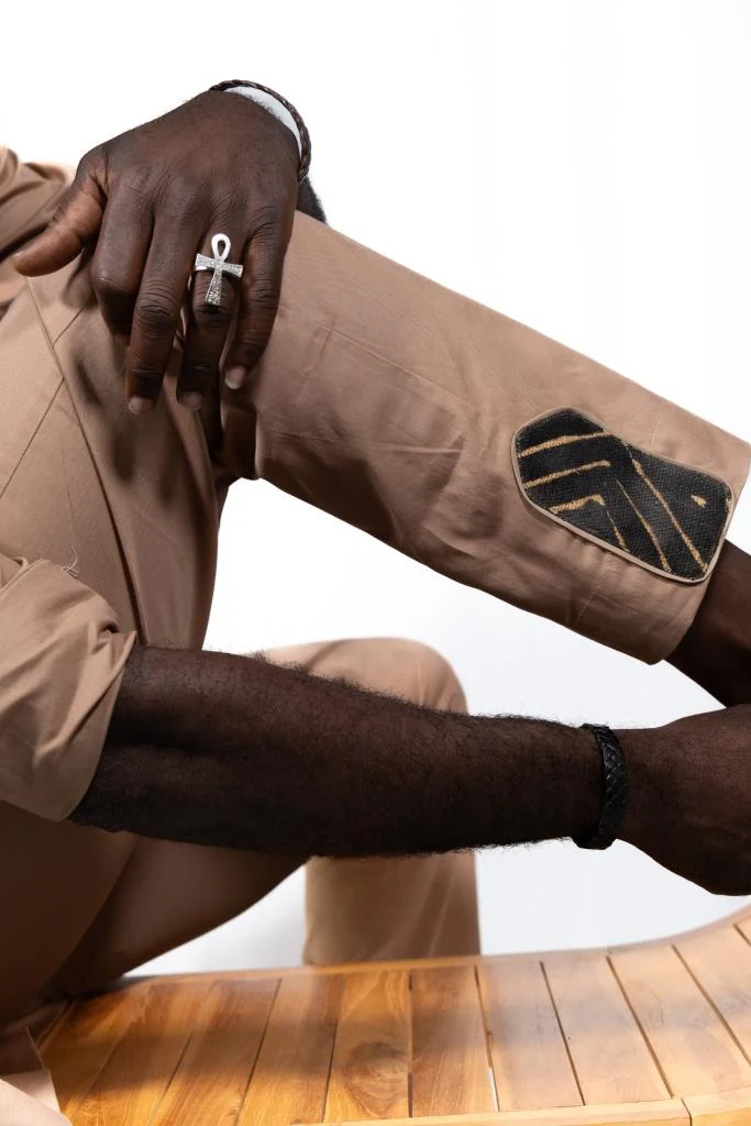 Le Bogolan ou Bogolanfini, originaire de l’ancien Empire du Mali, est un tissu peint à la main avec des pigments naturels. Symbole de protection et d’identité, il confère à cet ensemble une dimension culturelle unique. Plus qu’un vêtement, il s’inscrit dans la mode africaine homme qui relie l’héritage du Mali à une esthétique contemporaine.