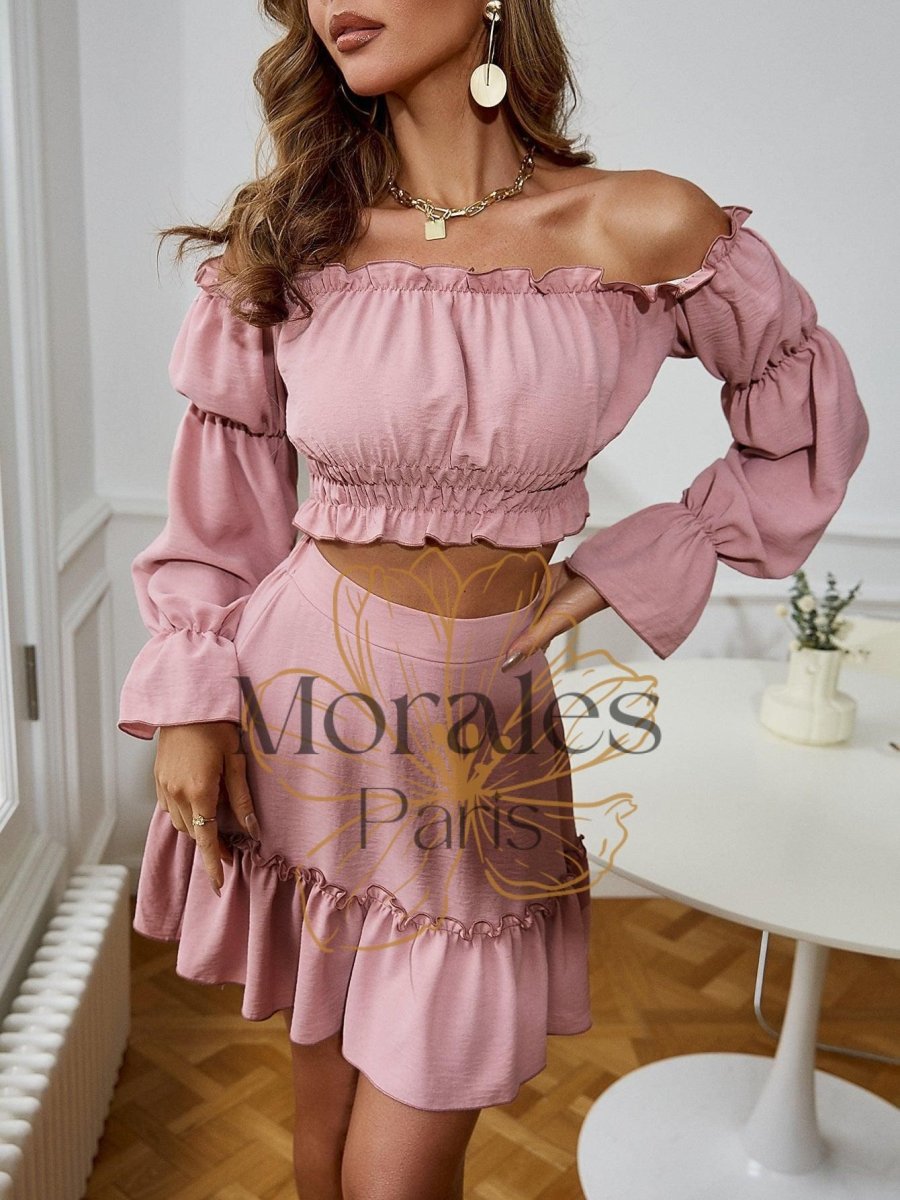 Ensemble 2 Pièces À Volants Roses