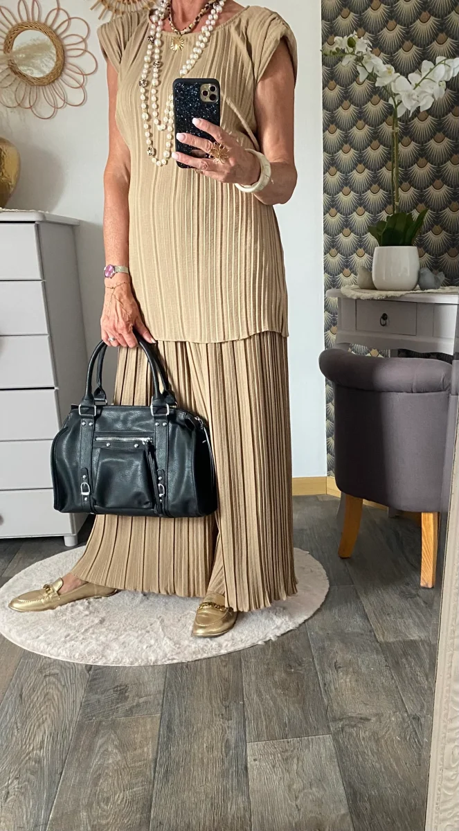 ENSEMBLE PANTALON PLISSE CAMEL TU 36/48