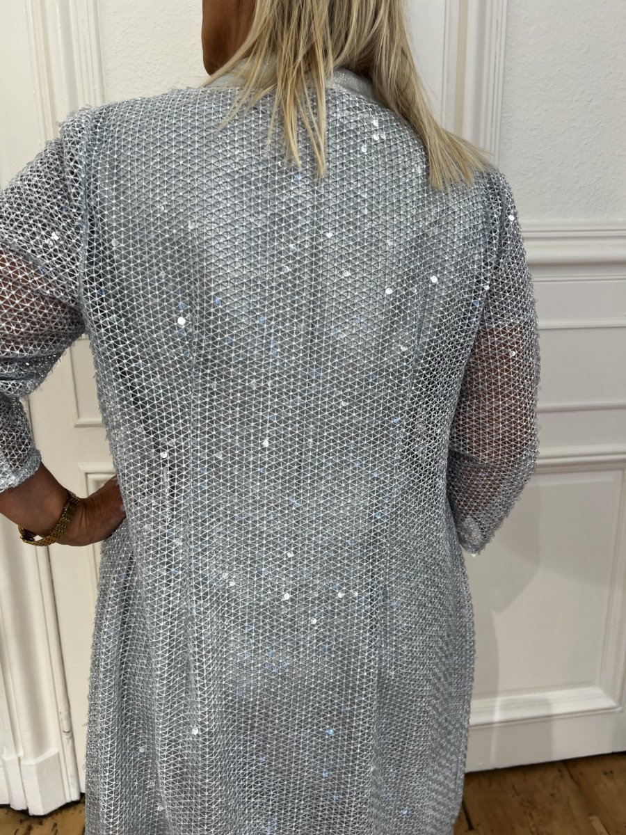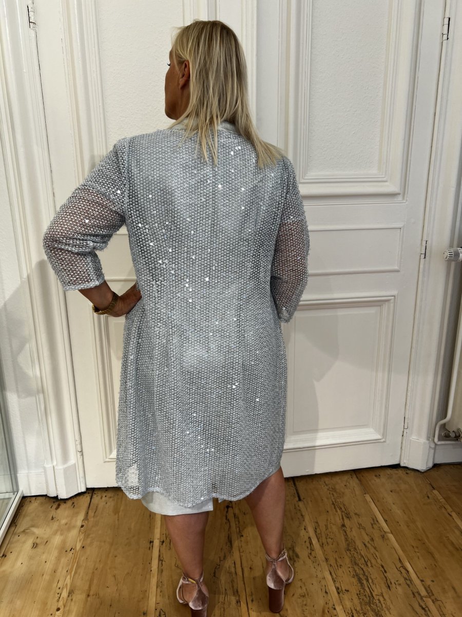 Robe mi-longue Col rond Dos fermé Manches en mailles et sequins Ceinture en mailles et sequins Manteau mi long en maille et sequins Composition : Robe : 52% polyester, 47% coton, 1% polyamide / Manteau : 94% polyester, 6% coton Conseils d’entretien : nettoyage à sec modéré, pas de séchage en tambour, repasser à froid