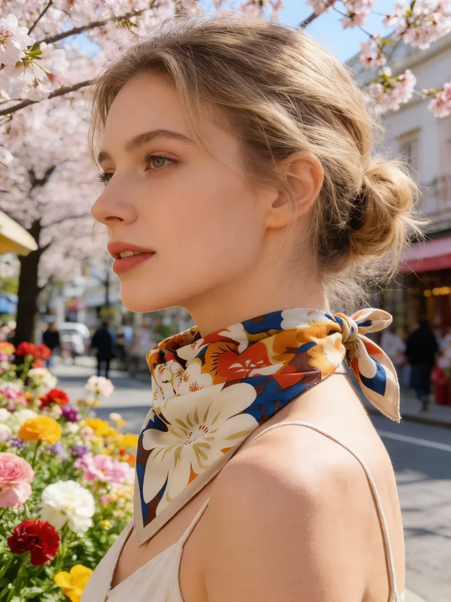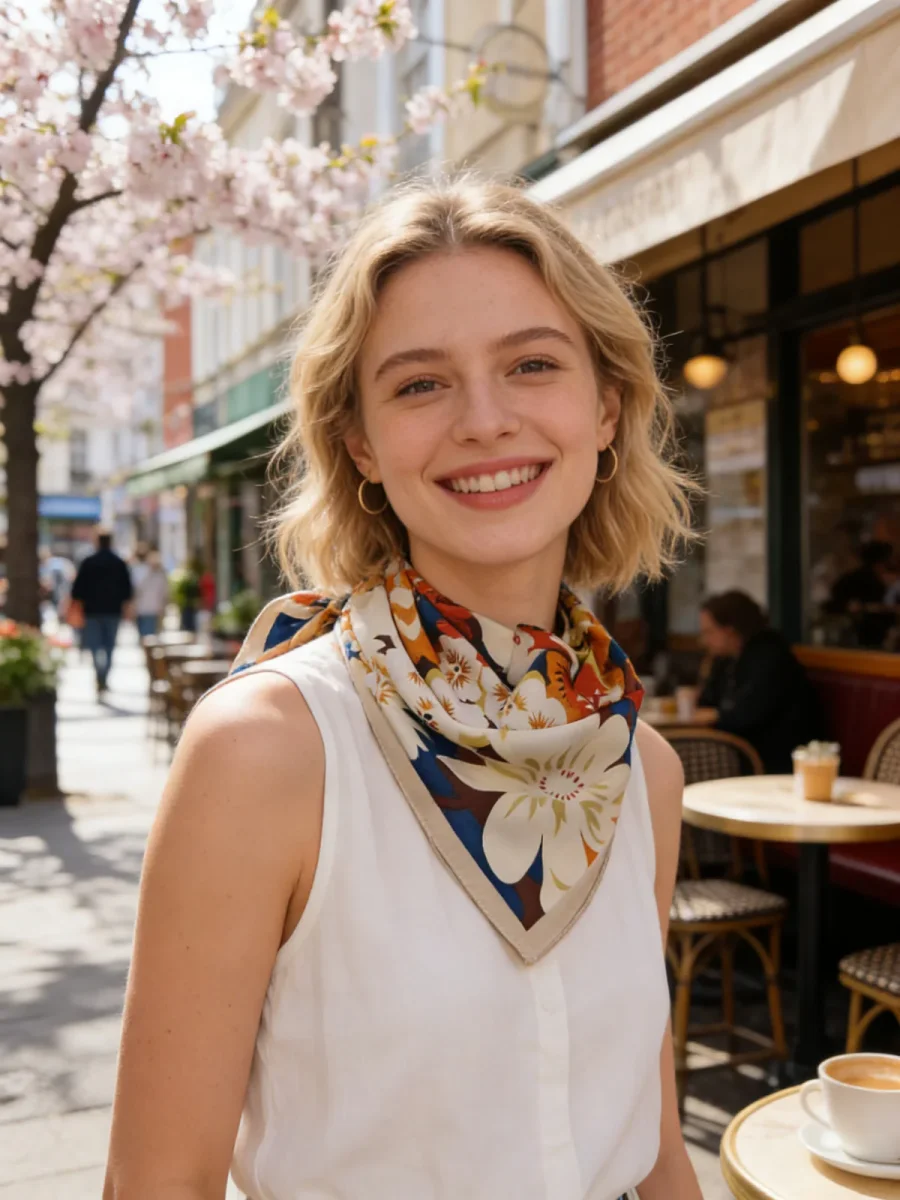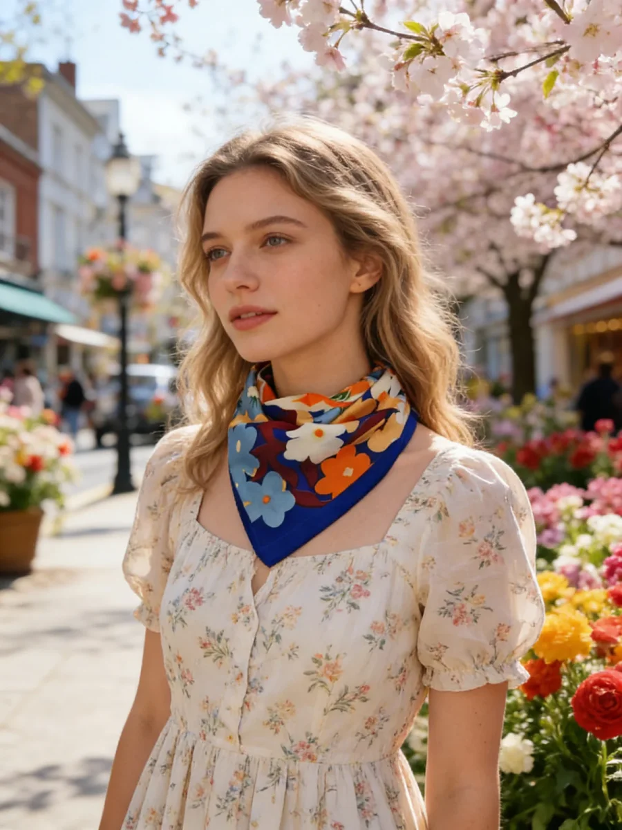 Foulard léger en 100% polyester aux motifs floraux vibrants. Ses dimensions généreuses de 70×70 cm en font un accessoire polyvalent pour sublimer vos tenues au quotidien. Parfait pour la saison Printemps/Été 2026, ce foulard apporte une touche de couleur et de légèreté à votre garde-robe.