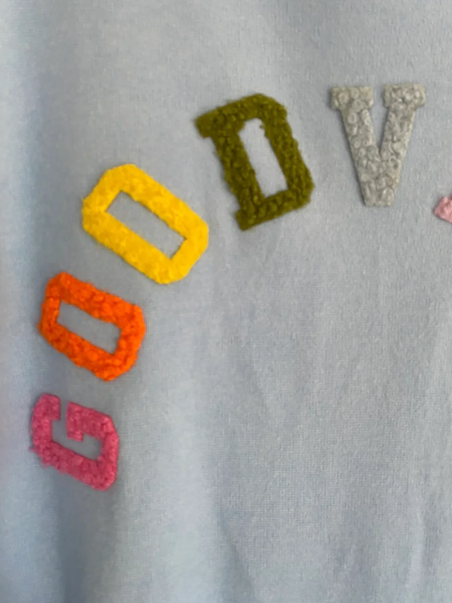 Gilet manches longues , se porte ouvert , avec inscriptions colorées au dos en pilou pilou .