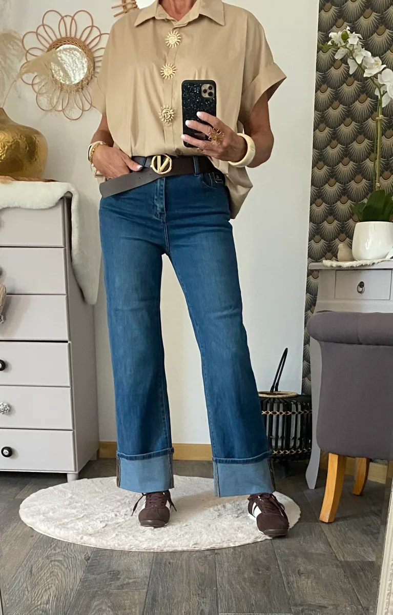 Jean wide leg stetch avec revers