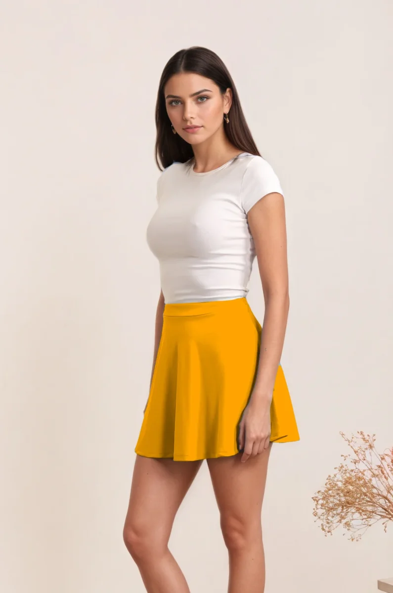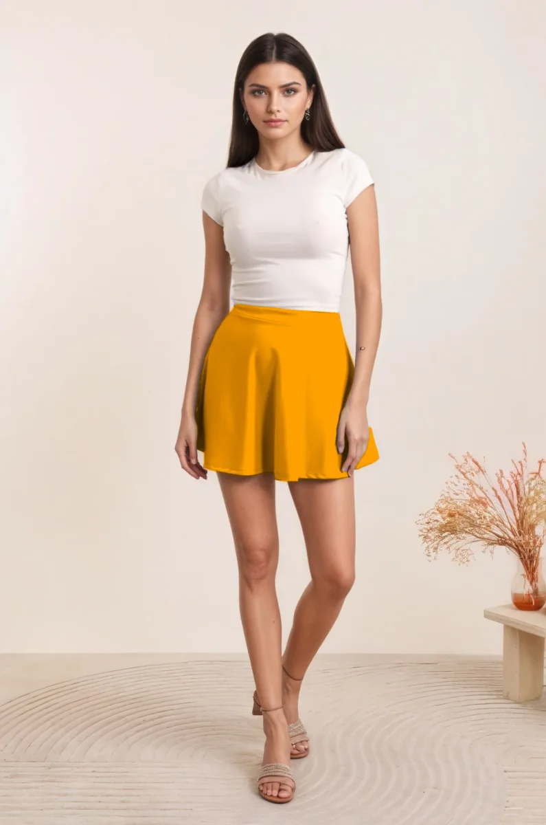 Jupe courte évasée à taille haute, parfaite pour un look élégant et féminin. Coupe flatteuse qui épouse les courbes avec grâce, idéale pour toutes les occasions, du casual au chic. Composition : Polyester (97%), Élasthanne (3%) pour un confort optimal et une bonne tenue. Correspondance taille unique : 34-38. Matière souple et extensible qui s’adapte à votre morphologie.