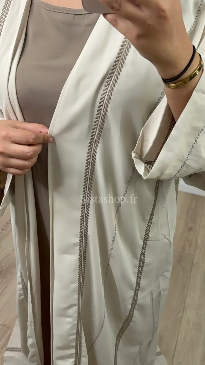 Ensemble Abaya & Kimono élégant et raffiné.Le kimono noir fluide est sublimé par de jolies broderies en forme de feuilles qui décorent les manches et le devant. Les broderies apportent une touche chic et travaillée tout en restant discrètes. En dessous, la abaya est sans manches, parfaite pour un maximum de confort et de légèreté. […]