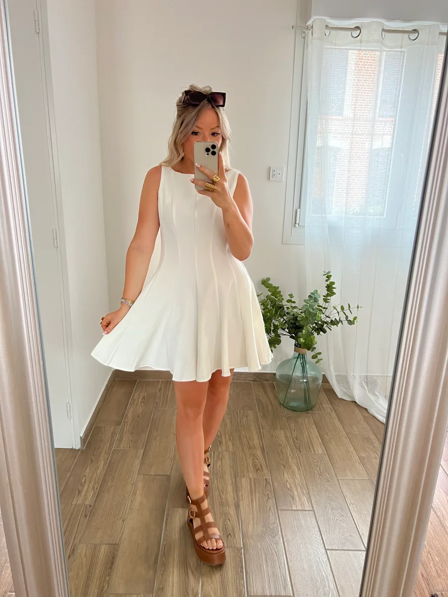 Robe coupe évasée qui se ferme dans le dos par une fermeture éclair Dispose de poches Doublée Composition : 100% polyester Coloris : Blanc Tailles disponibles : du S au L. Prendre sa taille habituelle. Pour rappel, le modèle mesure 1m60 Tous les articles qui composent les looks sont disponibles sur notre site internet. Les […]