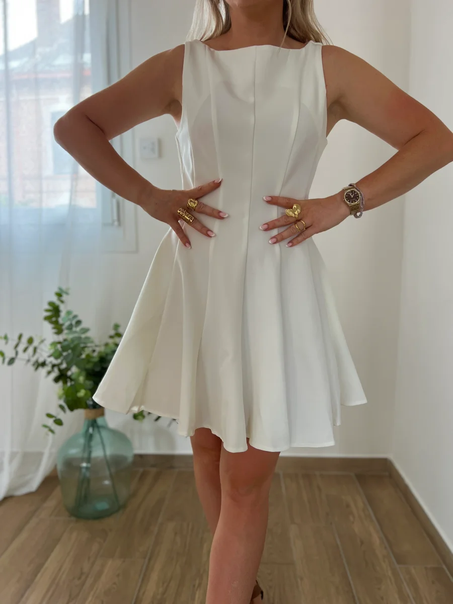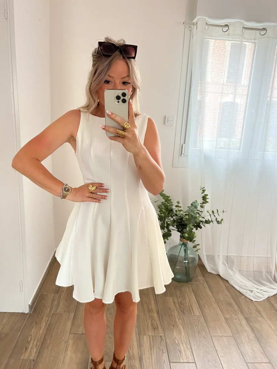 Robe coupe évasée qui se ferme dans le dos par une fermeture éclair