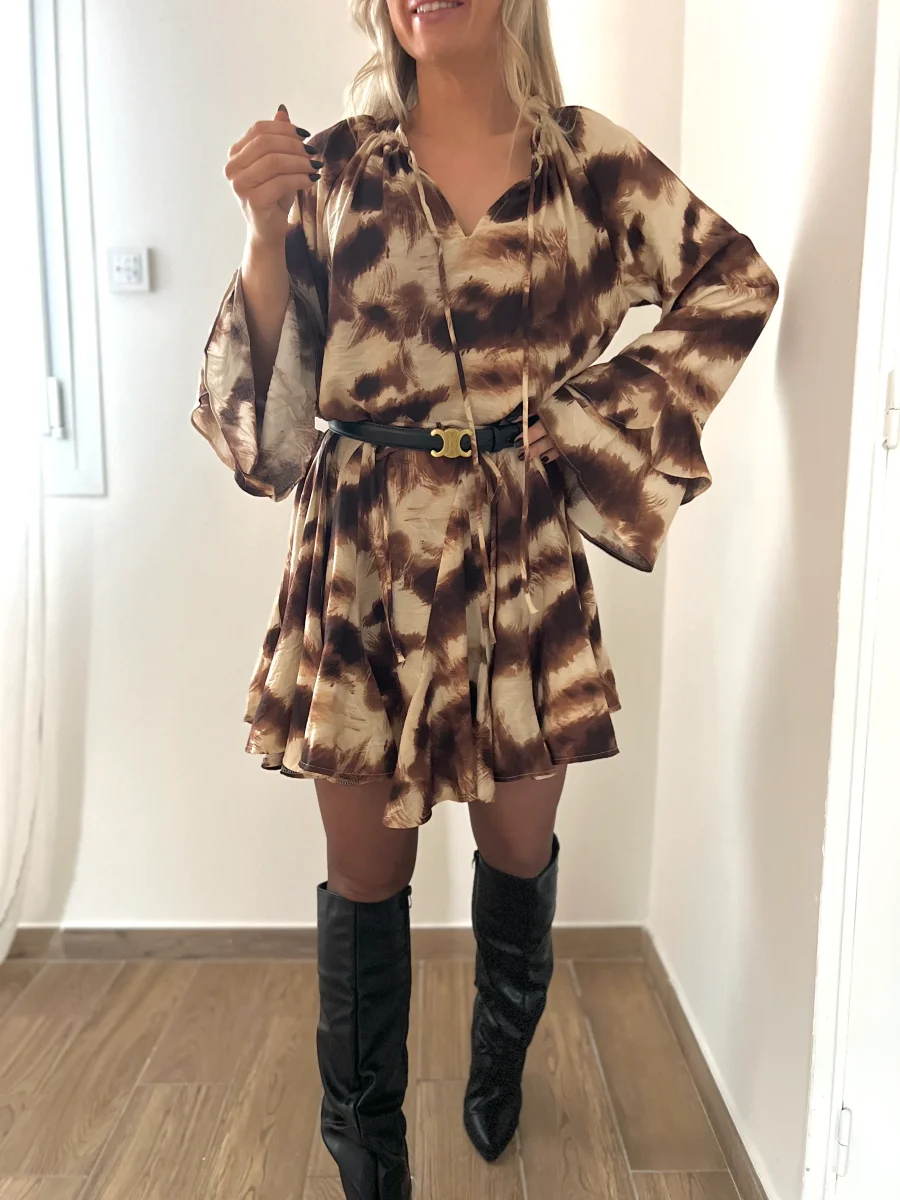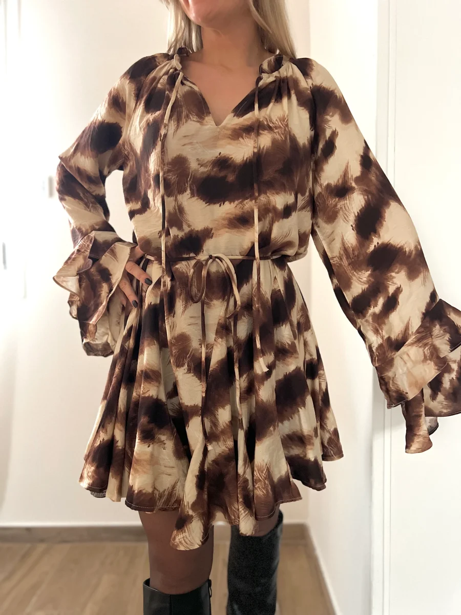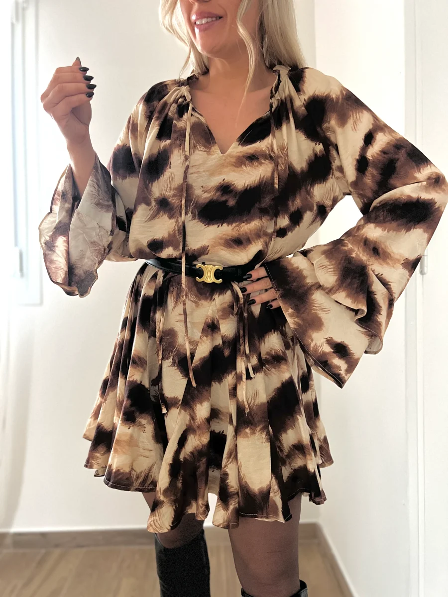 Robe coupe évasée avec manches trompettes