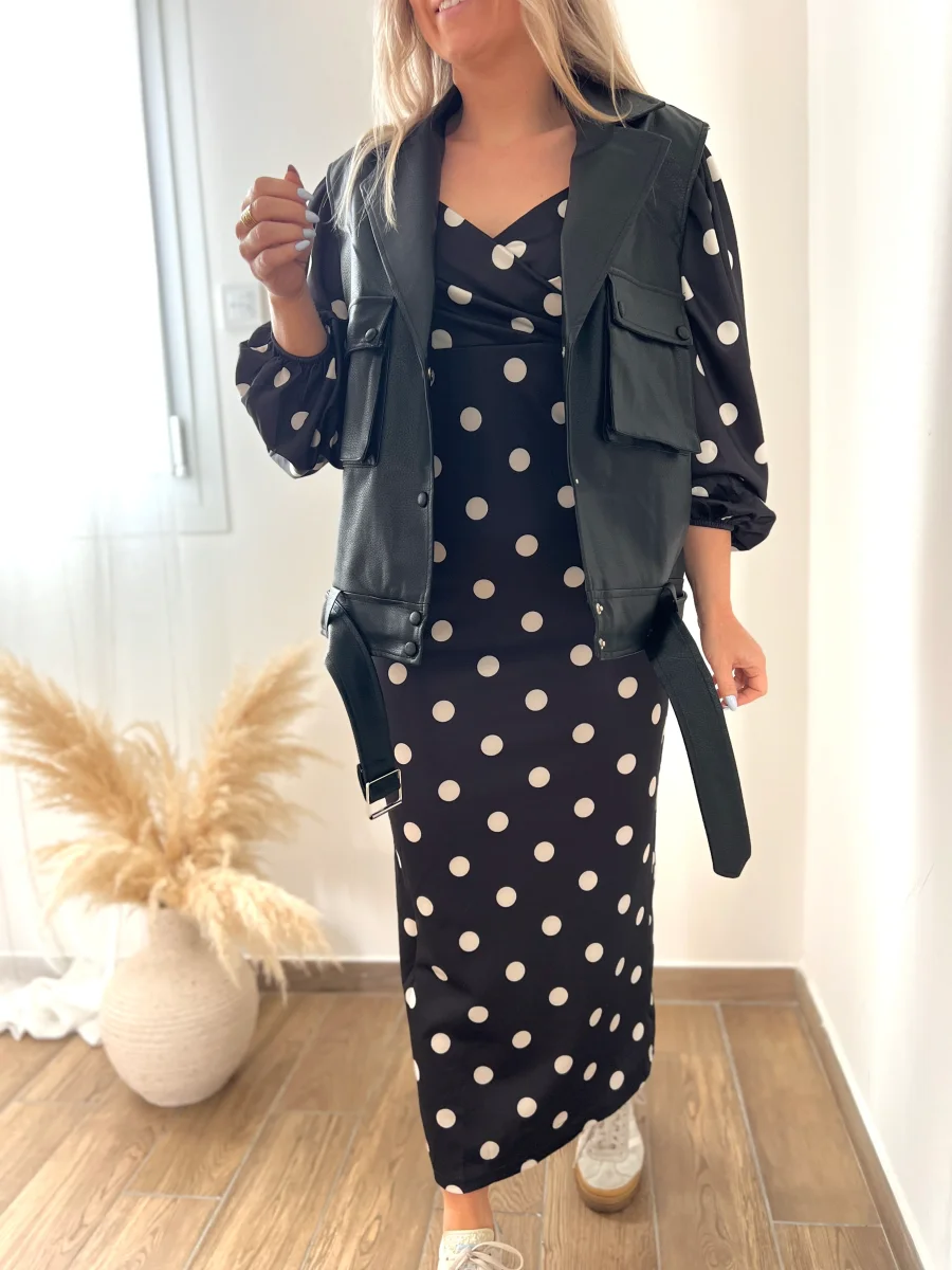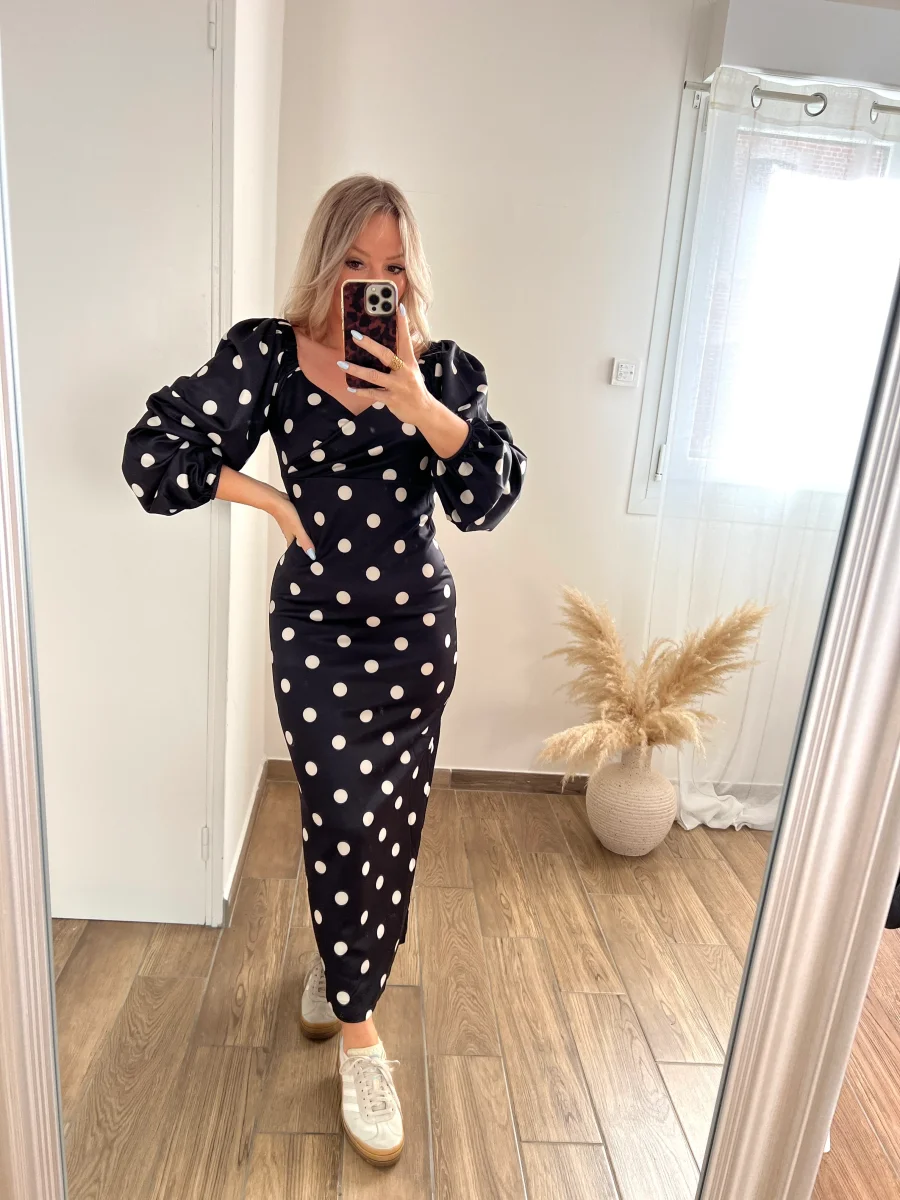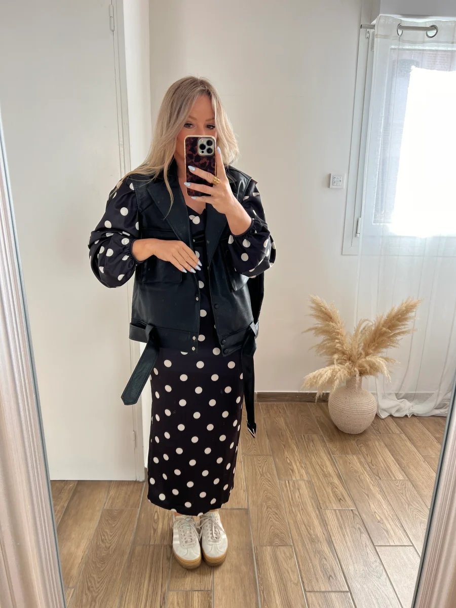 Robe longue, col V Matière élastique Composition : 50% coton, 50% polyester Coloris disponibles : Noir Tailles disponibles : S/M ou M/L. Prendre sa taille habituelle. Pour rappel, le modèle mesure 1m60 Tous les articles qui composent les looks sont disponibles sur notre site internet. Les Avantages LilieShop : – Possibilité de Paiement en 4 […]