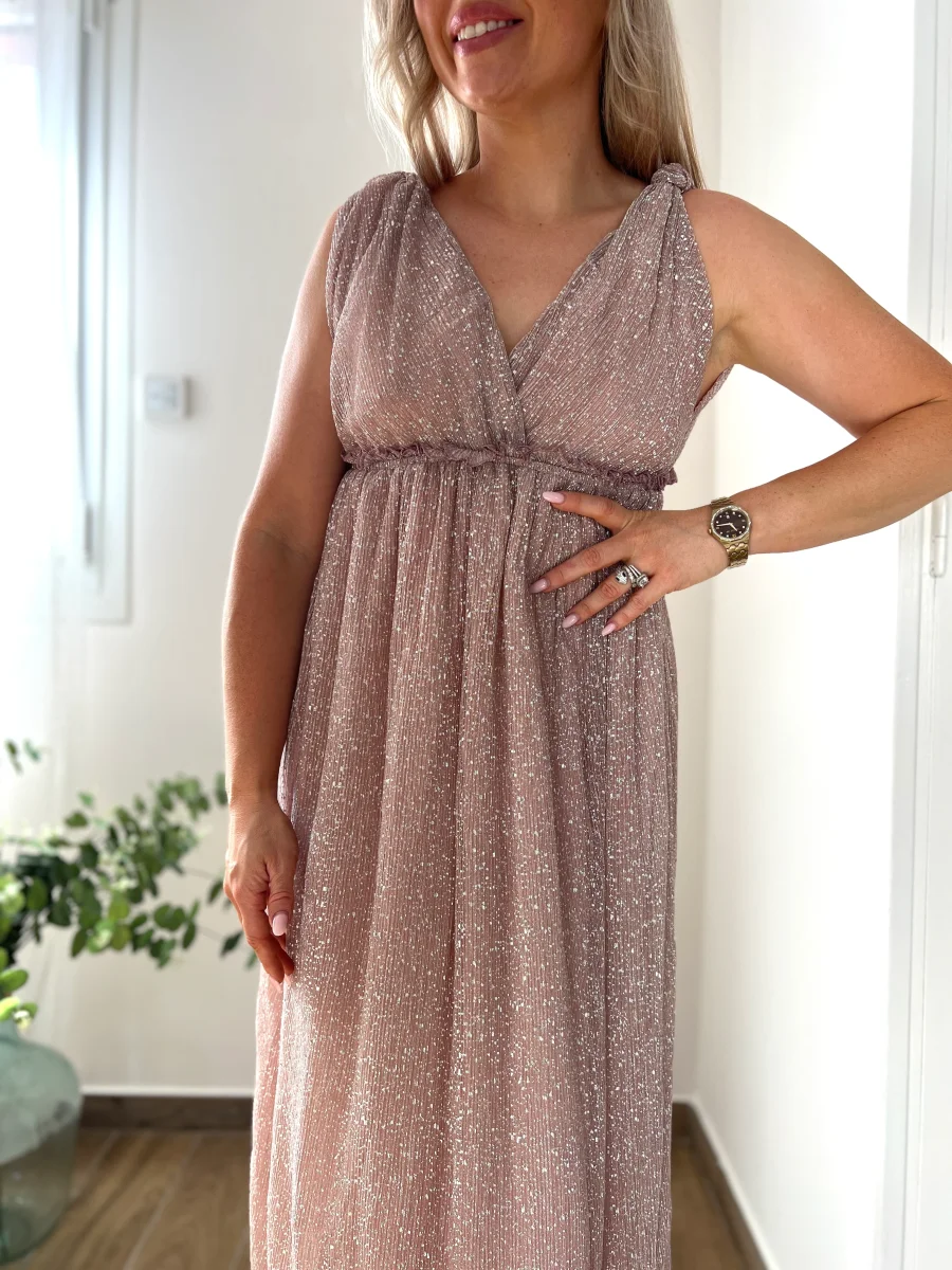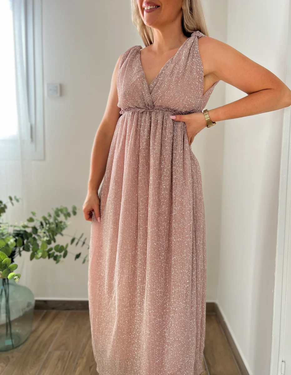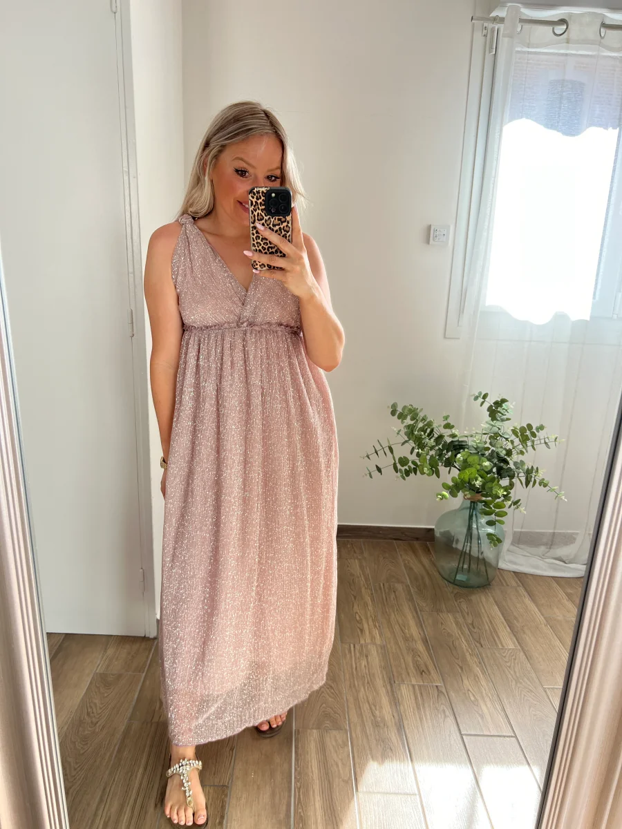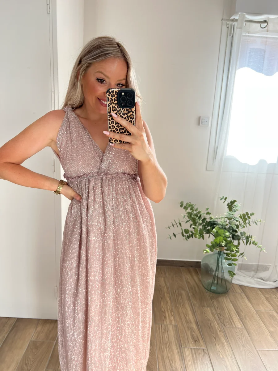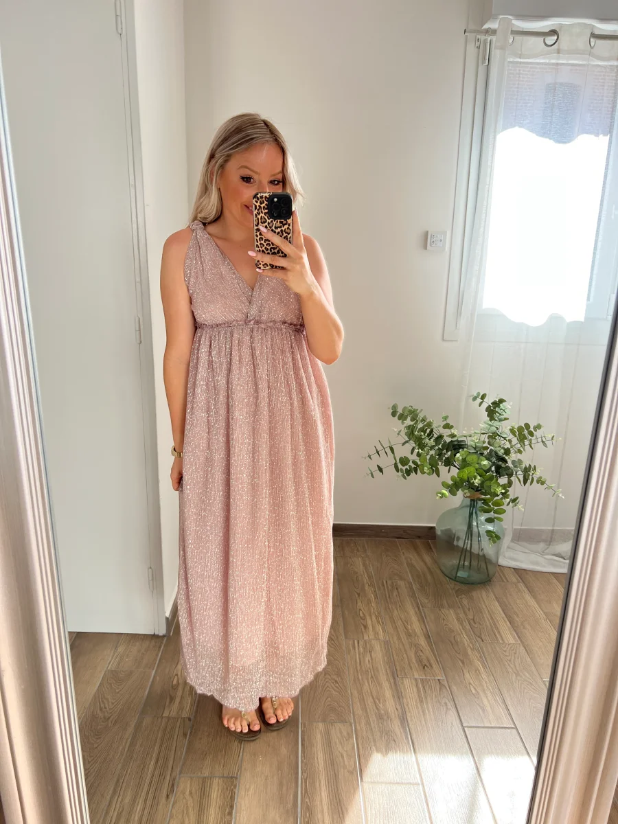 LA ROBE LONGUE IRISÉE ROSE POUDRÉ