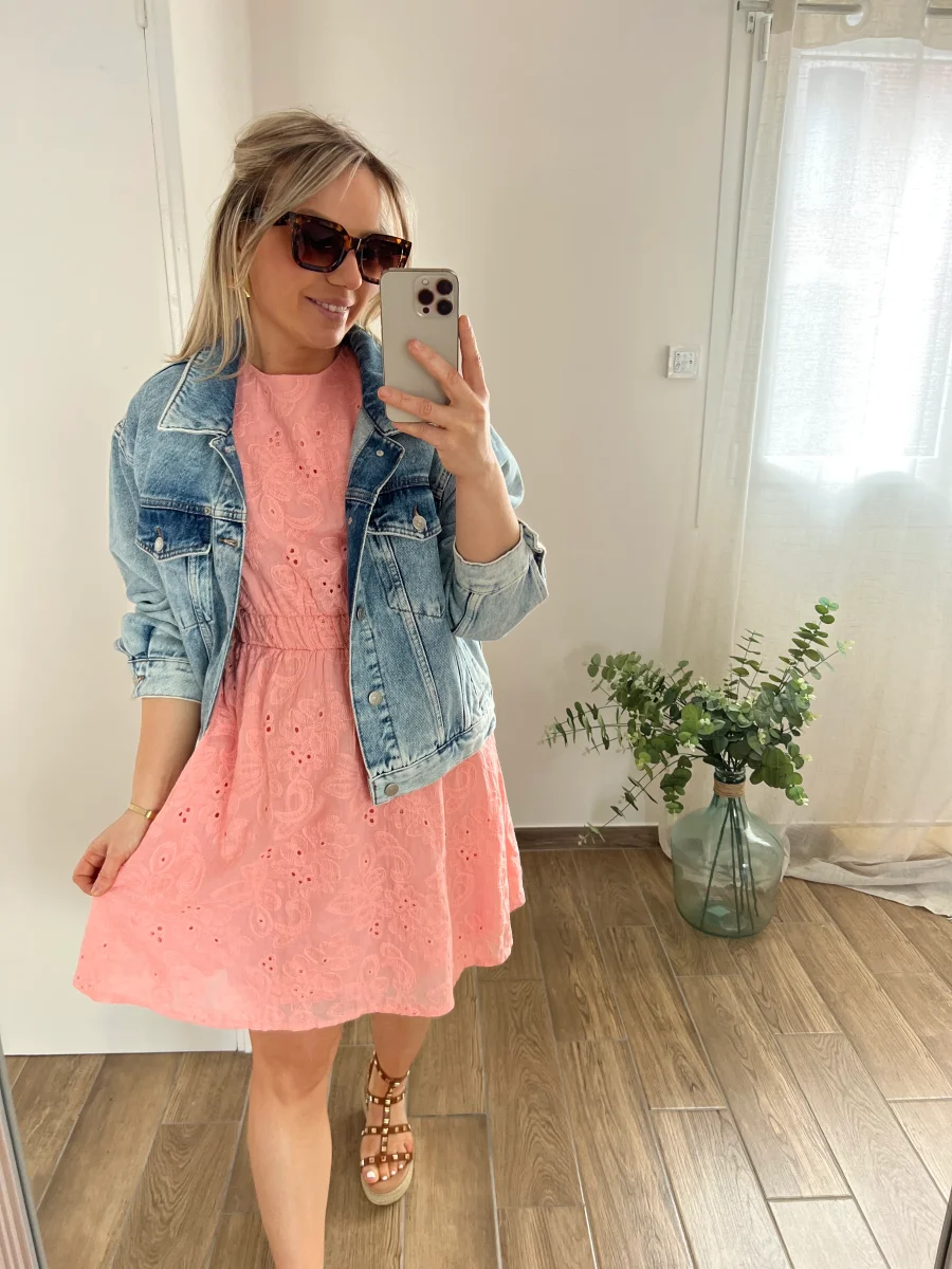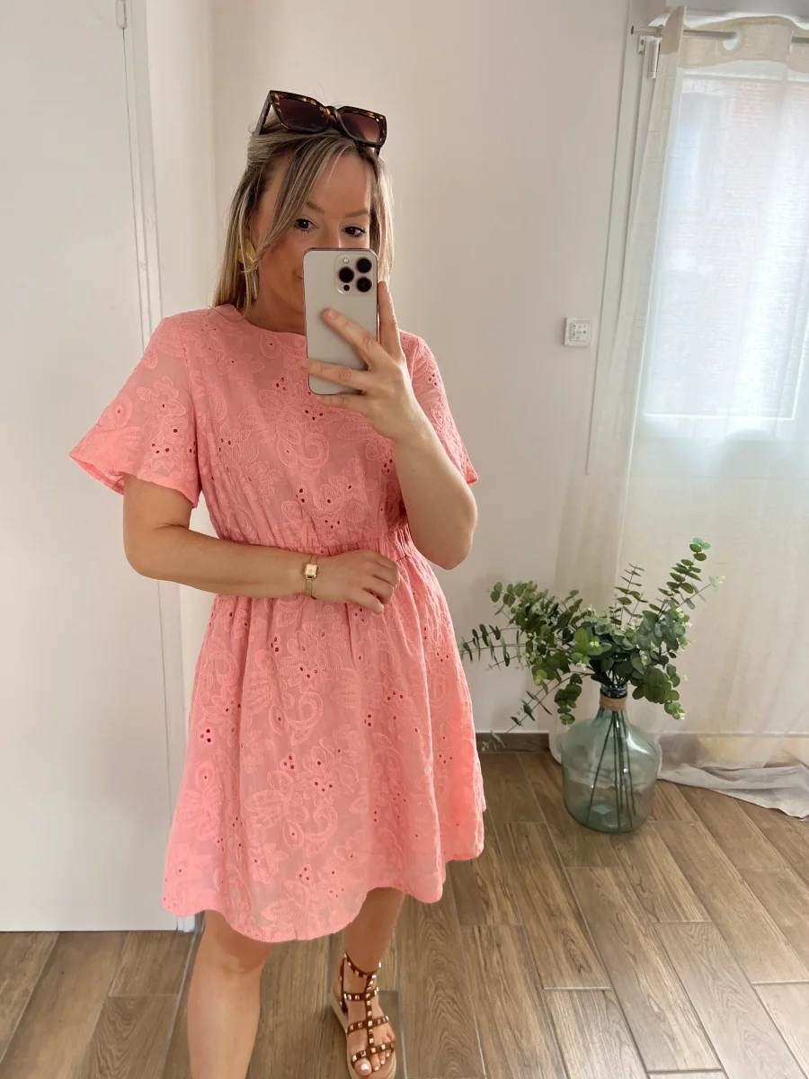 Robe doublée, tout en broderie anglaise. Taille élastique Se ferme dans le dos par un bouton. Composition : 100% coton Coloris : Rose poudré Tailles disponibles : du S au L. Prendre sa taille habituelle. Convient aux femmes enceintes jusqu’à 6mois de grossesse environ. Pour rappel, le modèle mesure 1m60 Tous les articles qui composent […]