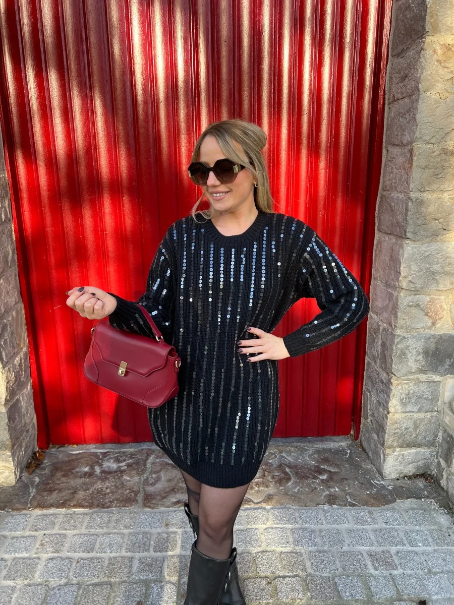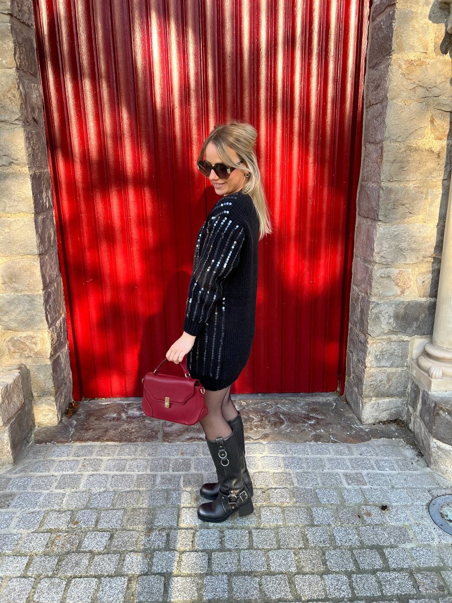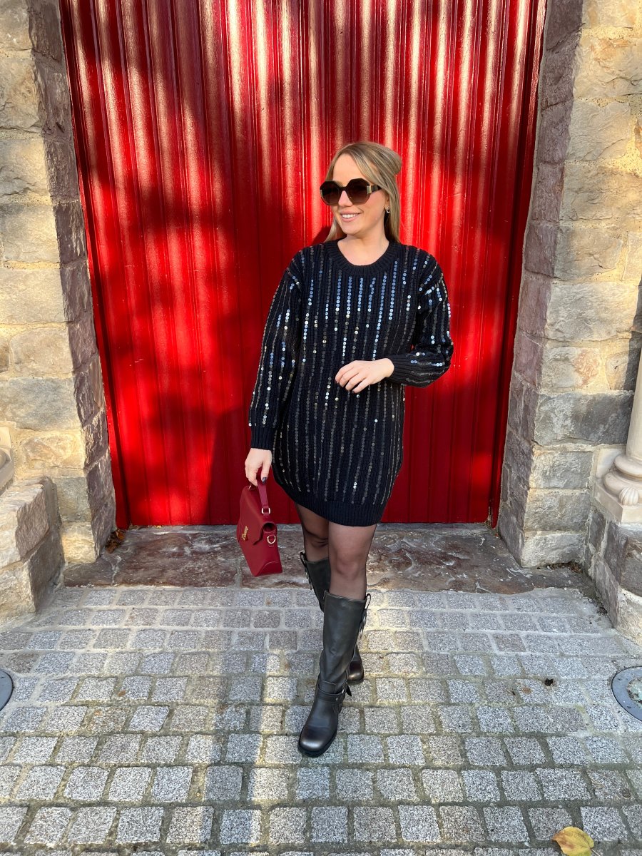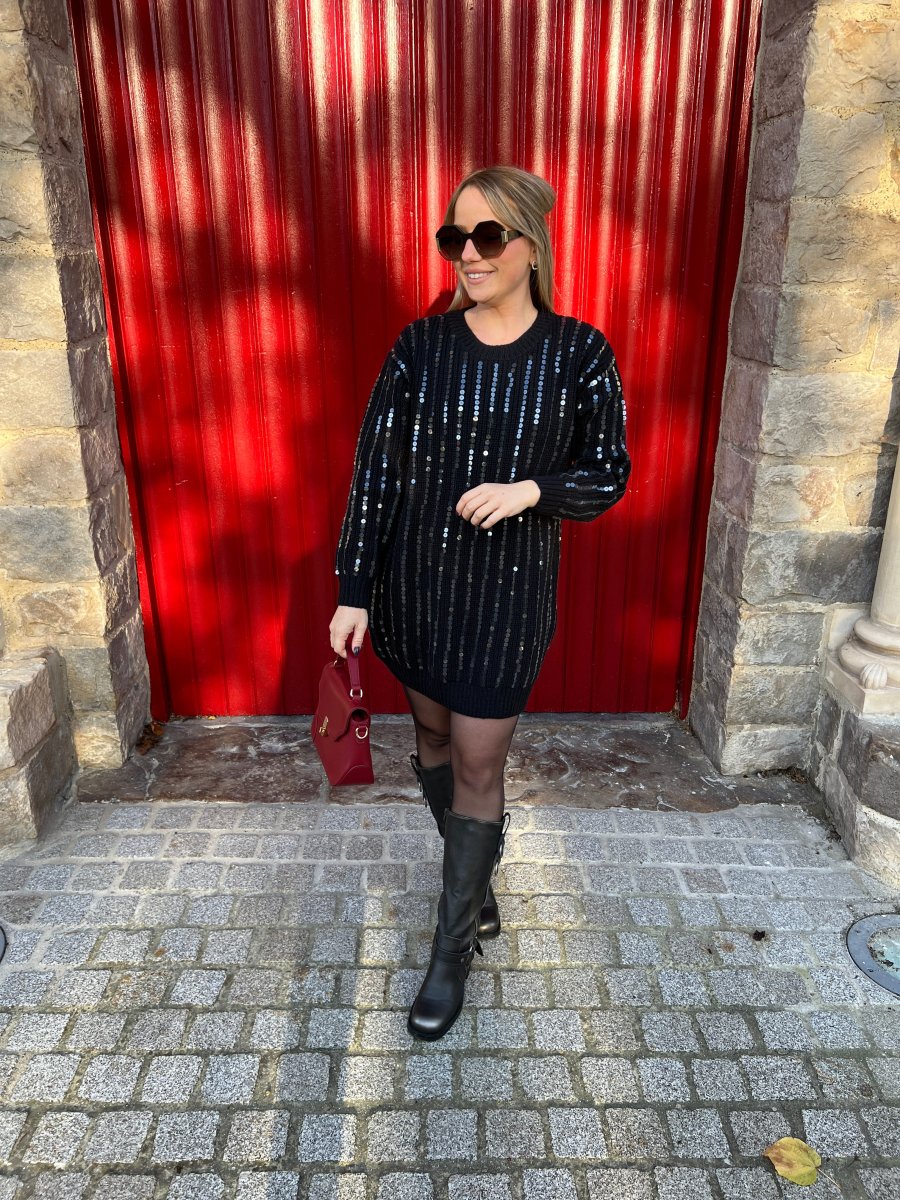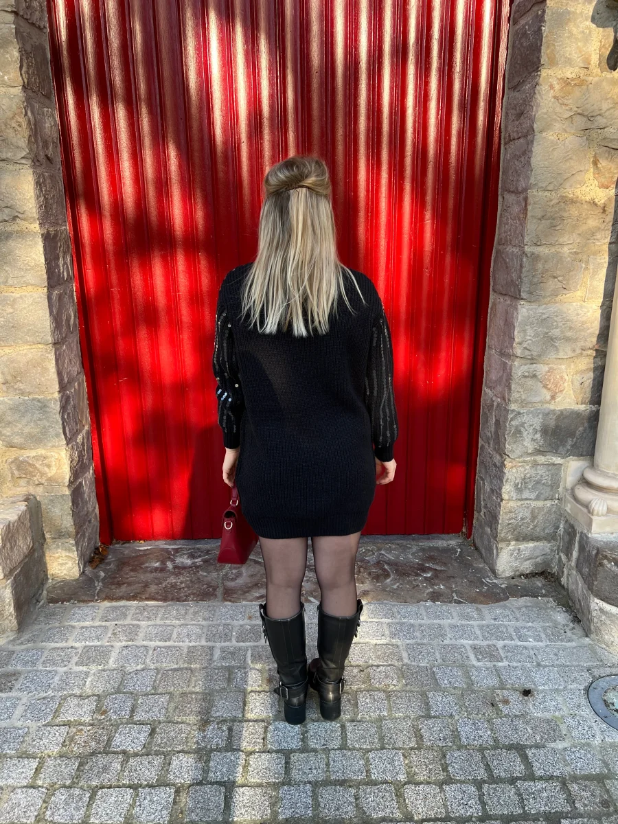 LA ROBE PULL NOIR À SEQUINS
