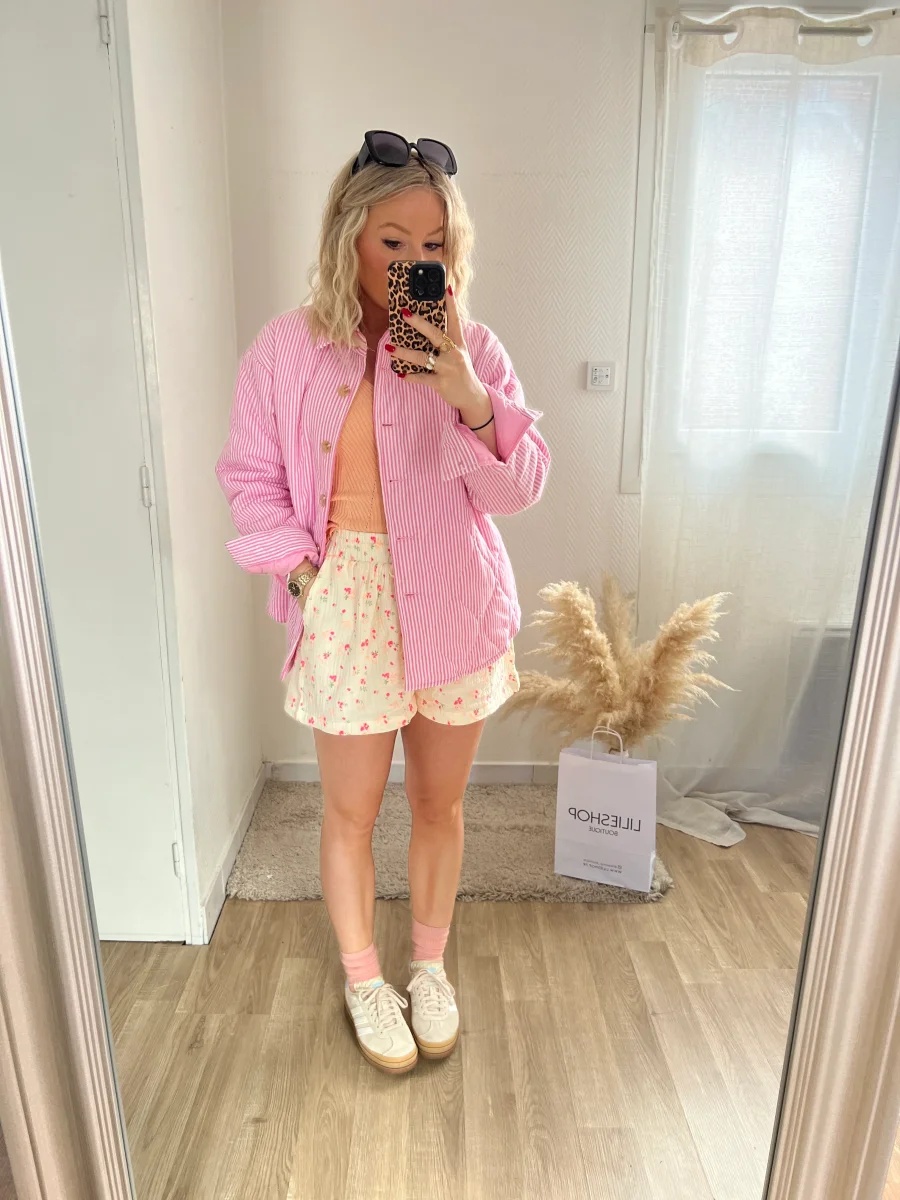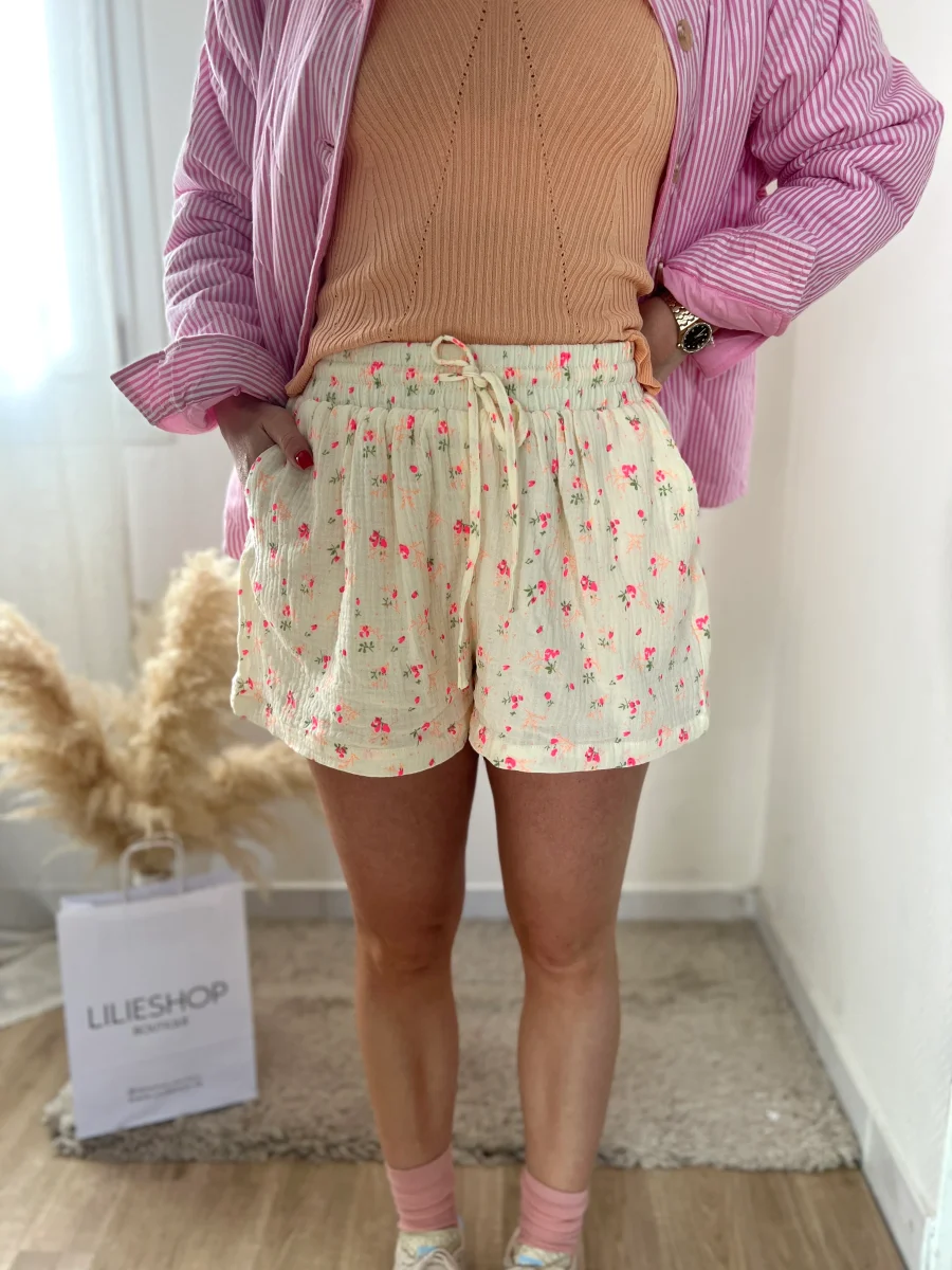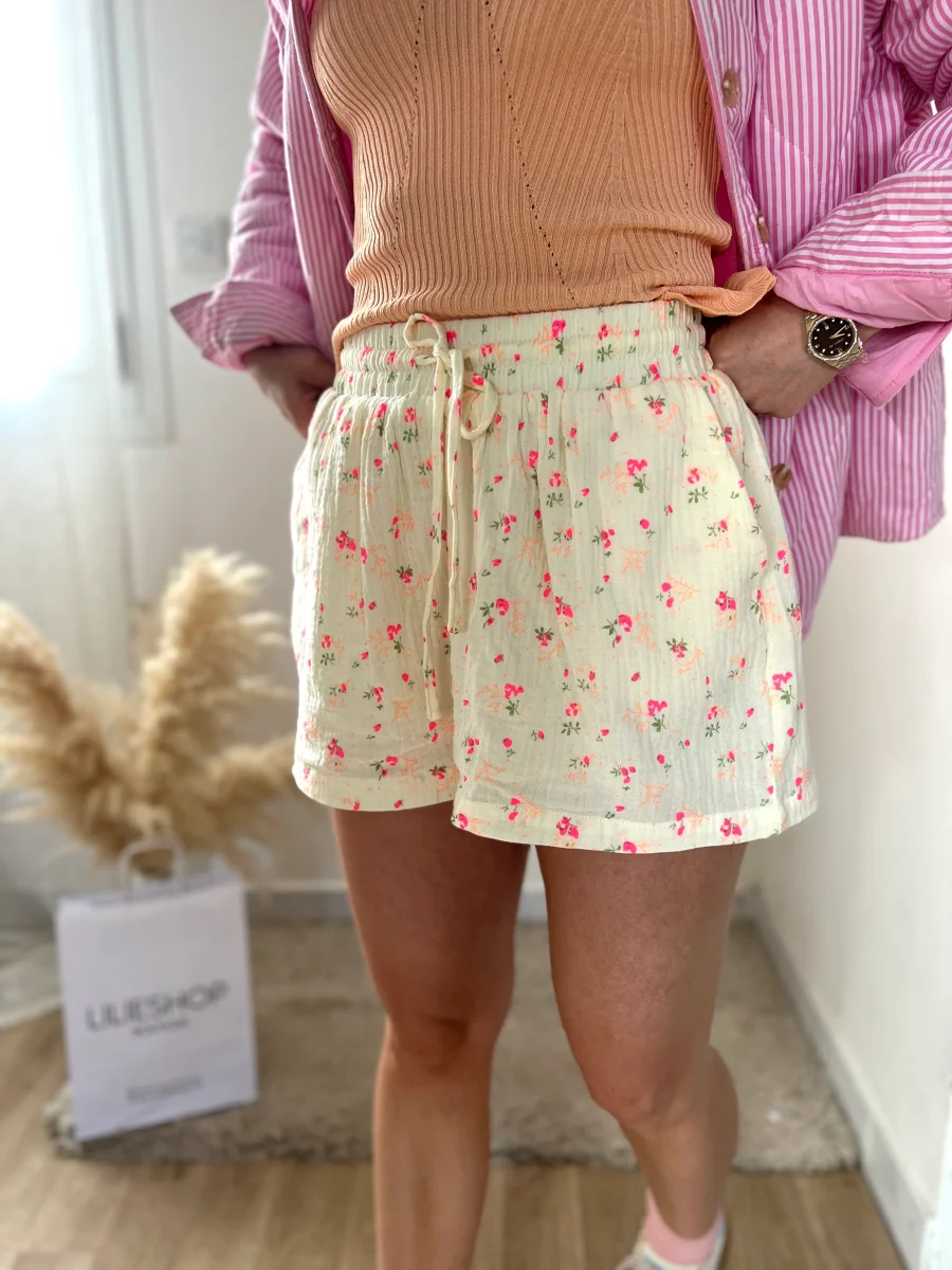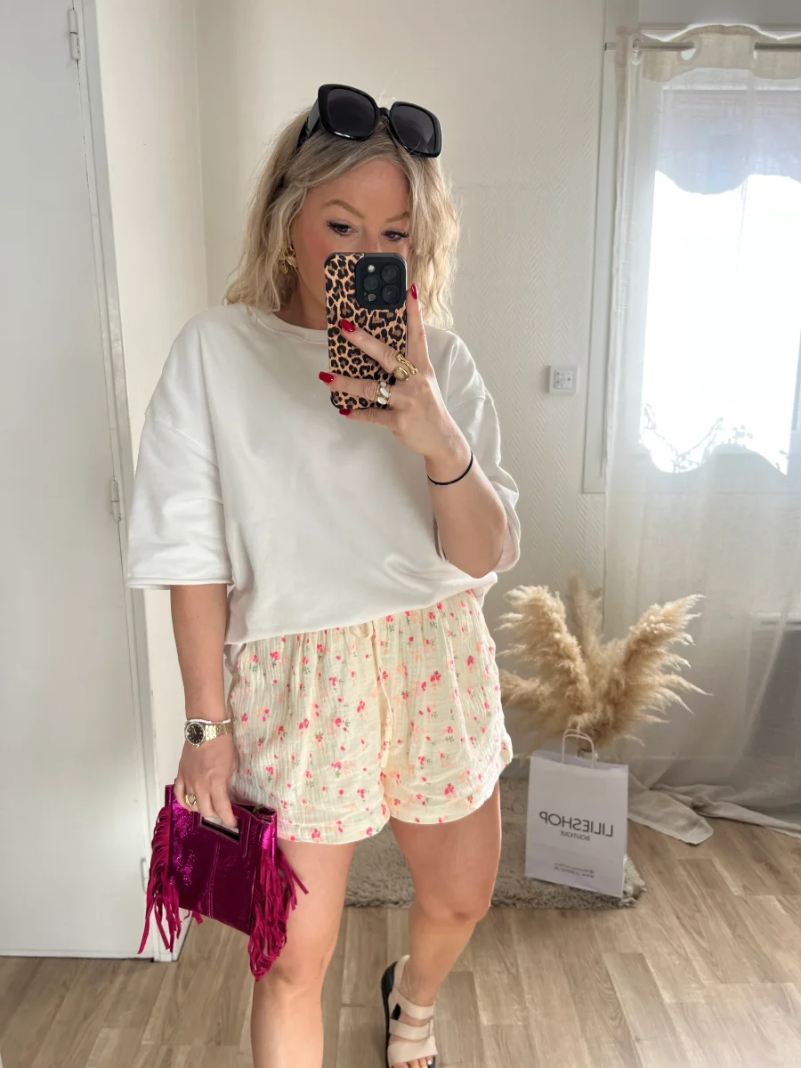Short en gaze de coton, doublé Taille élastique, poches sur le côté. Imprimé fleuri Composition : 100% coton. Coloris : Ecru avec des fleurs fluo Tailles disponibles : du S au L. Prendre sa taille habituelle. Convient aux femmes enceintes. Le modèle mesure 1m60 pour 60 kilos et met habituelle du S (36) Tous les […]