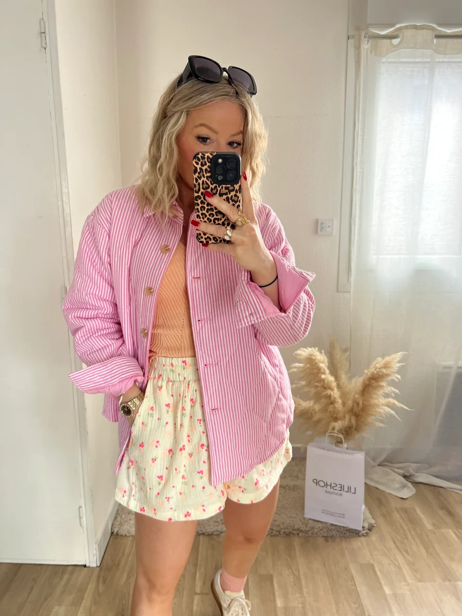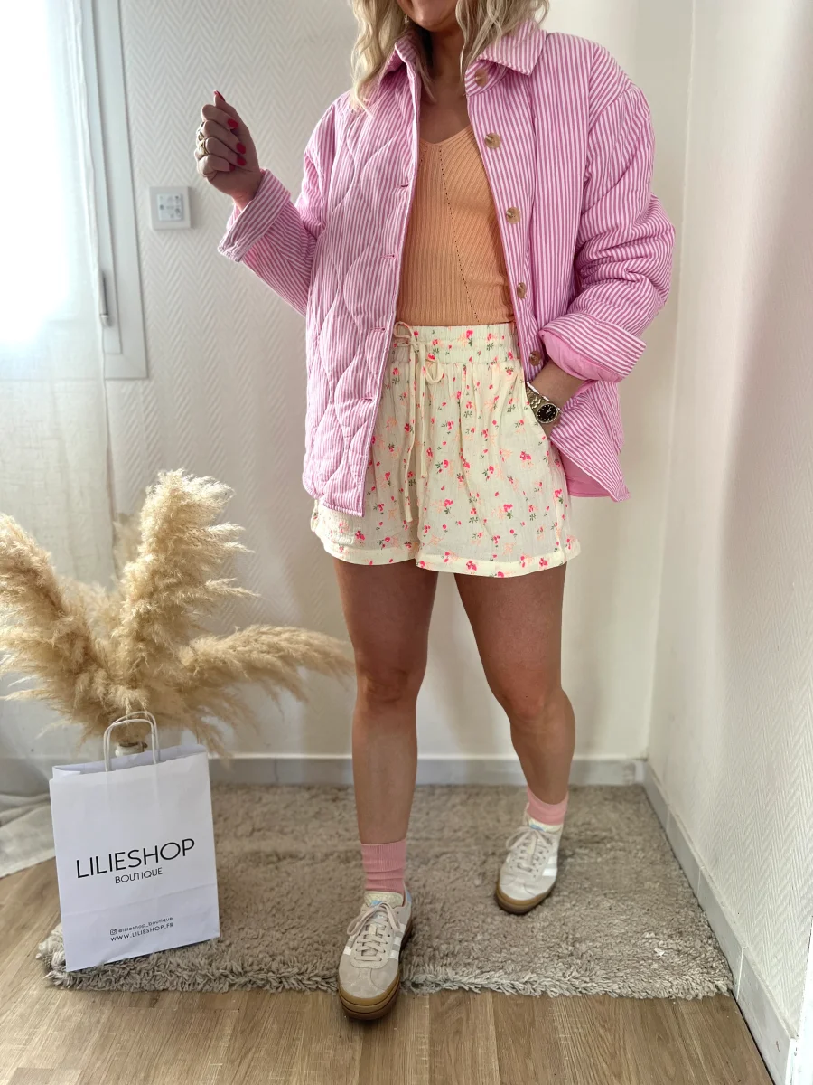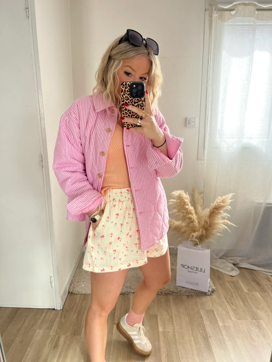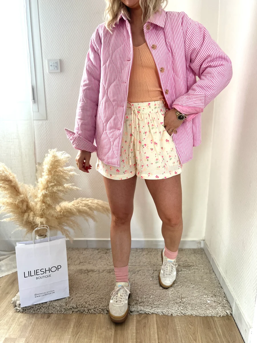 Short en gaze de coton, doublé Taille élastique, poches sur le côté. Imprimé fleuri Composition : 100% coton. Coloris : Ecru avec des fleurs fluo Tailles disponibles : du S au L. Prendre sa taille habituelle. Convient aux femmes enceintes. Le modèle mesure 1m60 pour 60 kilos et met habituelle du S (36) Tous les […]