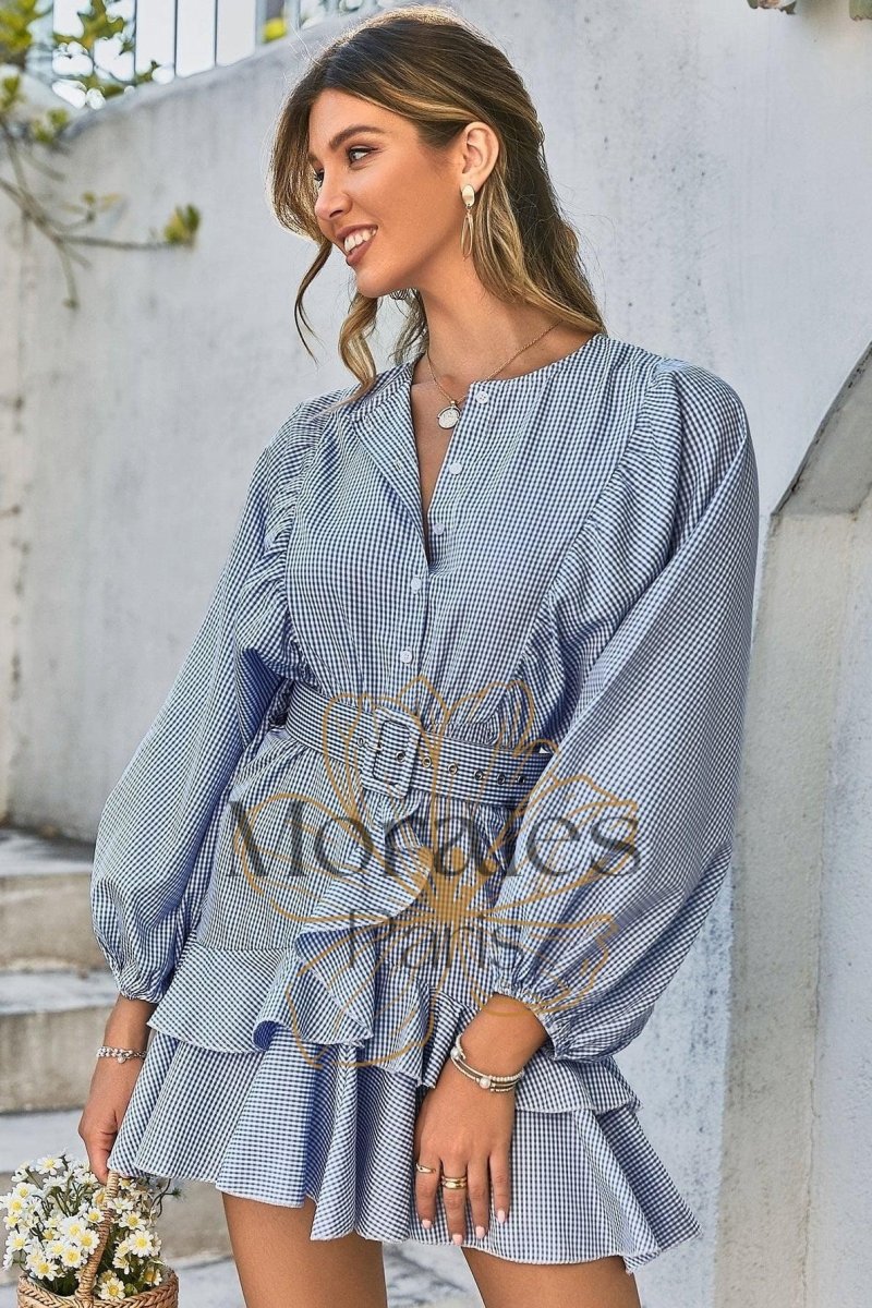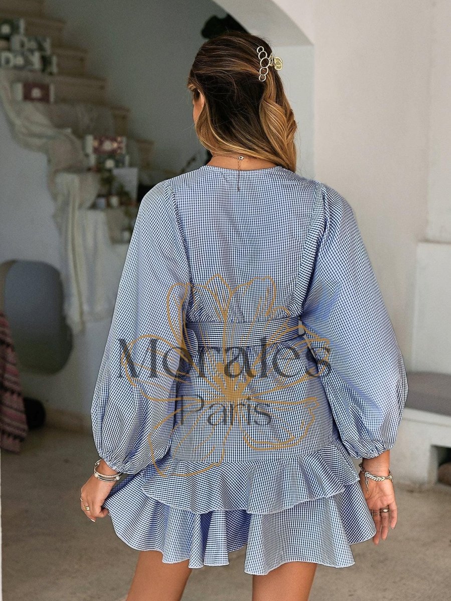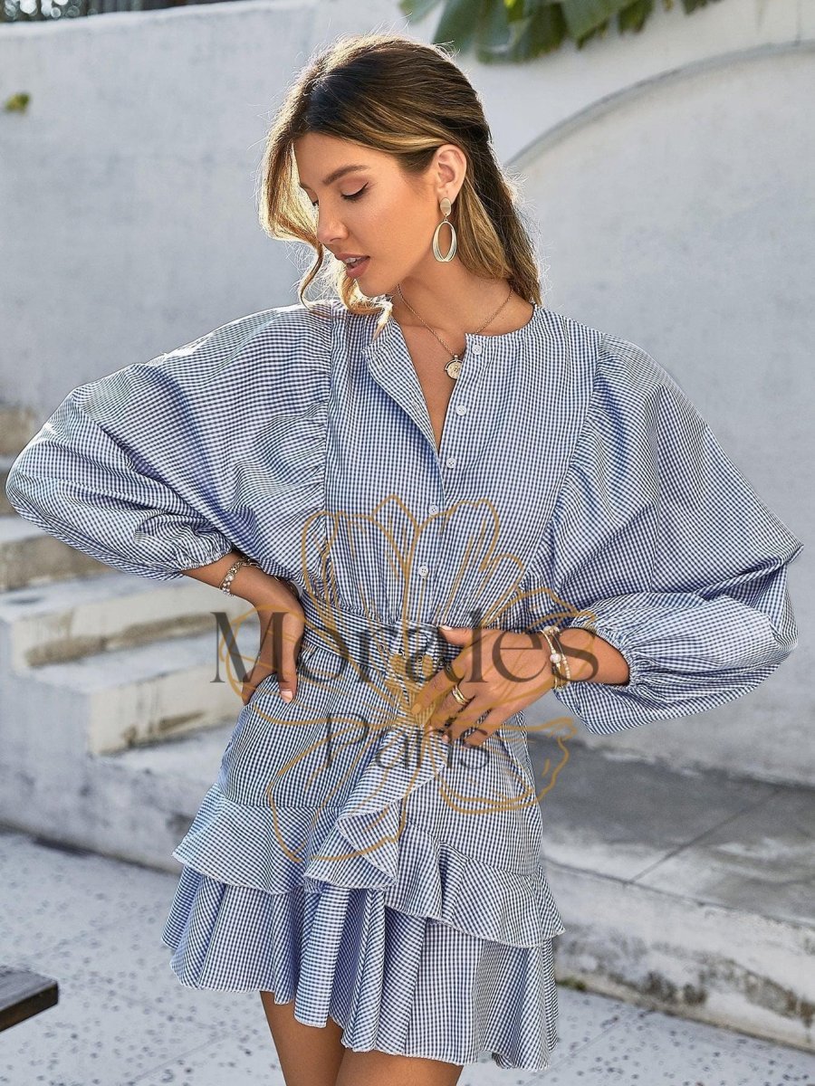 Cette robe bohème est parfaite pour les beaux jours du printemps ou de l’été. Son coloris bleu et ses volants lui confèrent une allure féminine. Que ce soit pour une journée familiale et amicale ou pour un évènement plus chic, portez cette robe Za belt plaid batwing à manches longues pour vous sentir à l’aise toute la journée. Son style A-line vous donnera un look à la fois chic et décontracté.
