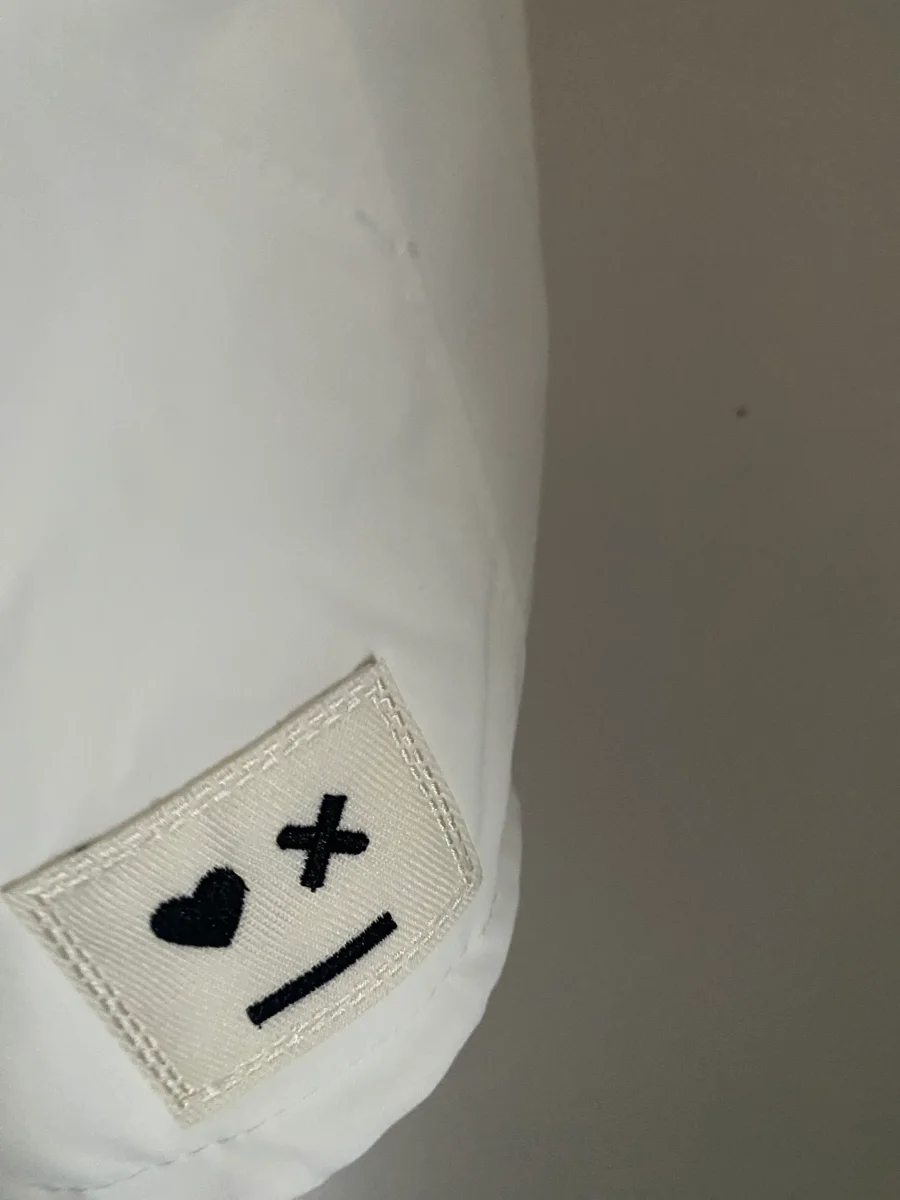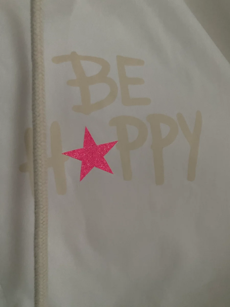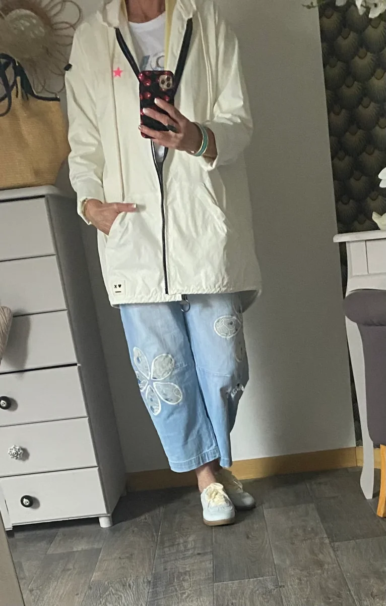 Veste parka pour le printemps , avec motifs dans le dos , fermeture par zip , deux poches avant , et capuche Déperlante et coupe vent 100% PLYESTERE MADE IN ITALIE LONGUEUR 81 CM LARGEUR 65 CM