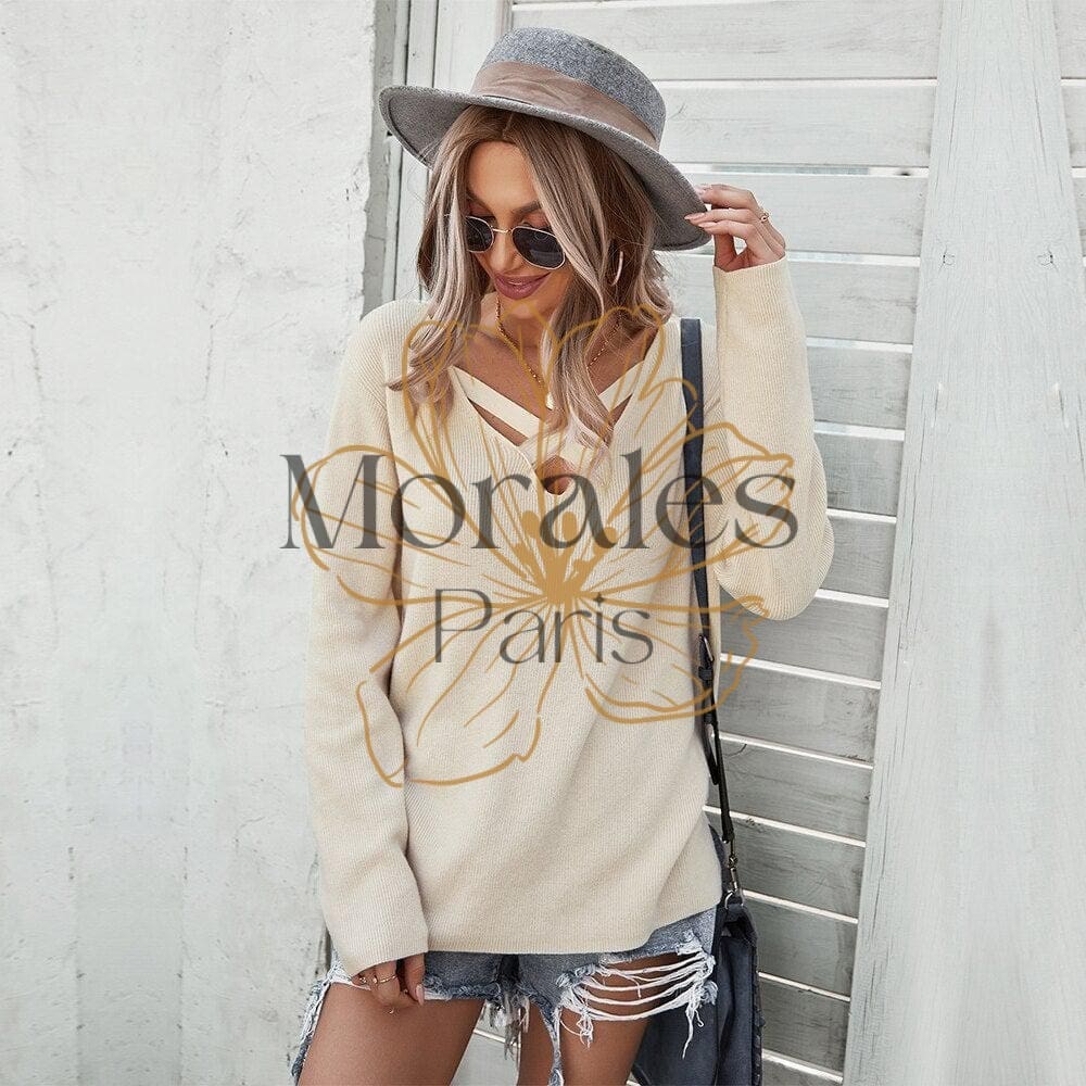 Offrez-vous un vêtement bohème élégant et original. Son col en V avec lacets dévoile votre buste et lui donne un style distinctif. Vous pouvez porter ce pull bohème à toutes les occasions, du travail à une soirée avec vos amis. Le pull est d’une seule couleur, ce qui le rend facile à associer avec tous vos manteaux et pantalons.