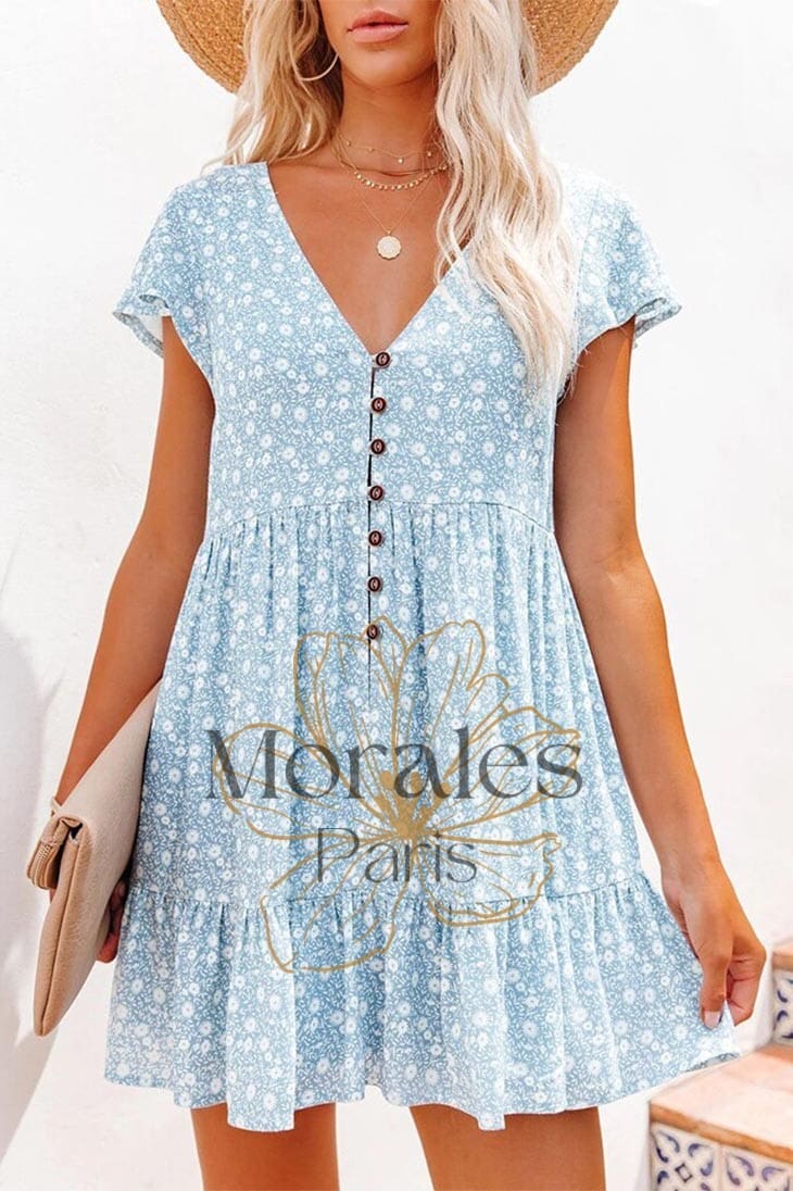 Mini Robe D’Été À Col En V