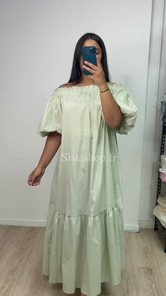 Robe à rayure vert Mélina